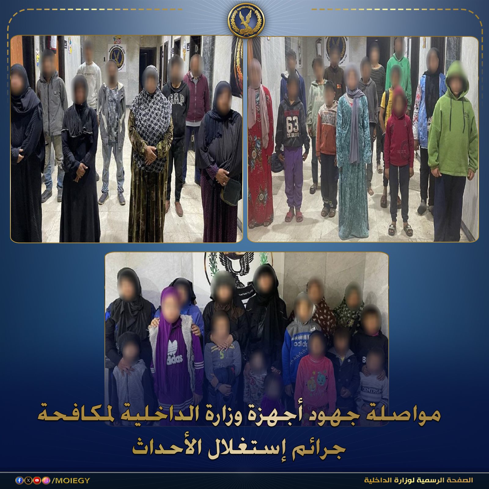 وكات الإدارة العامة لمباحث رعاية الأحداث بقطاع الشرطة المتخصصة قد تمكنت من ضبط (6 رجال ، 10 سيدات – لـ 8 منهم معلومات جنائية) لقيامهم باستغلال الأطفال الأحداث فى أعمال التسول وإستجداء المارة وبيع السلع بطريقة إلحاحية بنطاق محافظة القاهرة، وبصحبتهم (26 حدثًا) من المعرضين للخطر حال قيامهم ببيع السلع بشكل إلحاحي والتسول وبمواجهتهم اعترفوا بنشاطهم الإجرامى.