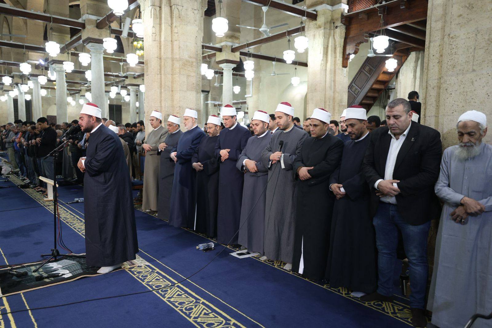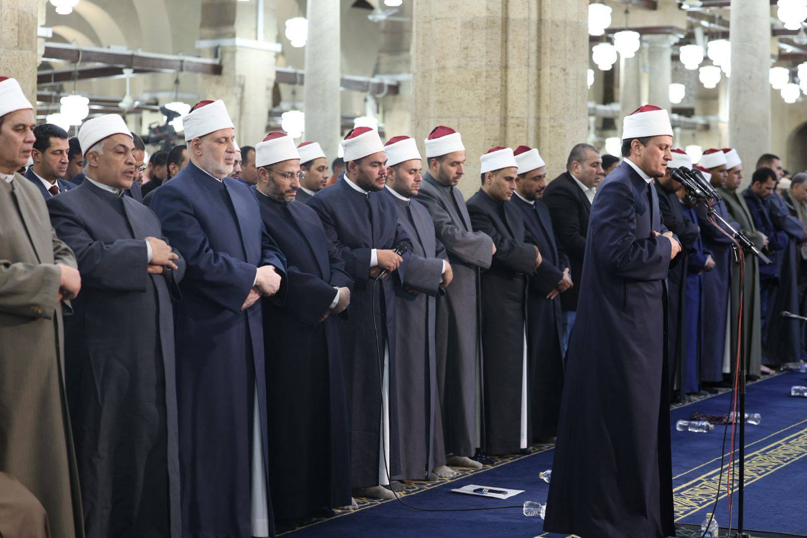 ورُفع أذان العشاء بصوت الشيخ محمد علاء الدين، ثم أمَّ المصلين في صلاة العشاء الشيخ رضا السويفي، قارئًا برواية الإمام حفص عن الإمام عاصم، من سورة آل عمران.