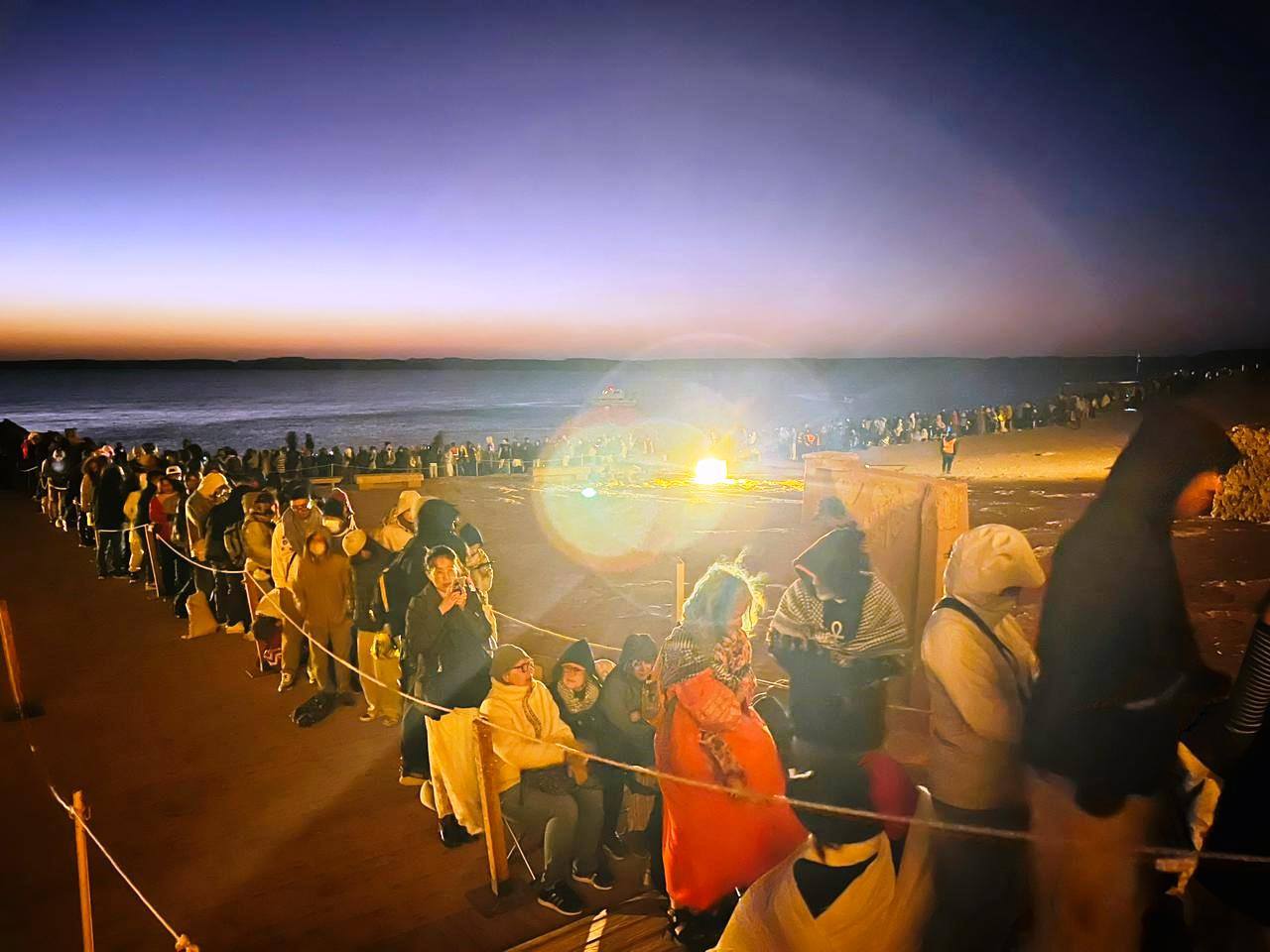 وأوضح المركز الإعلامي أن محافظة أسوان استقبلت صباح اليوم أكثر من 2000 سائح وزائر أجنبي ومصري، لمشاهدة هذه الظاهرة الفريدة، التي تعد واحدة من أعظم الظواهر الفلكية والهندسية في العالم، وتعكس ما بلغته الحضارة المصرية القديمة من تقدم علمي ودقة هندسية مبهرة.