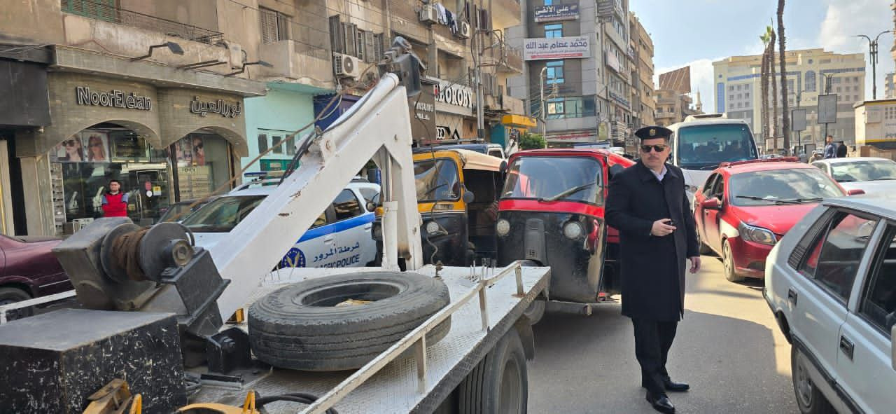 حملات مرورية مكثفة لضبط سيارات الأجرة والتكاتك المخالفة بالزقازيق