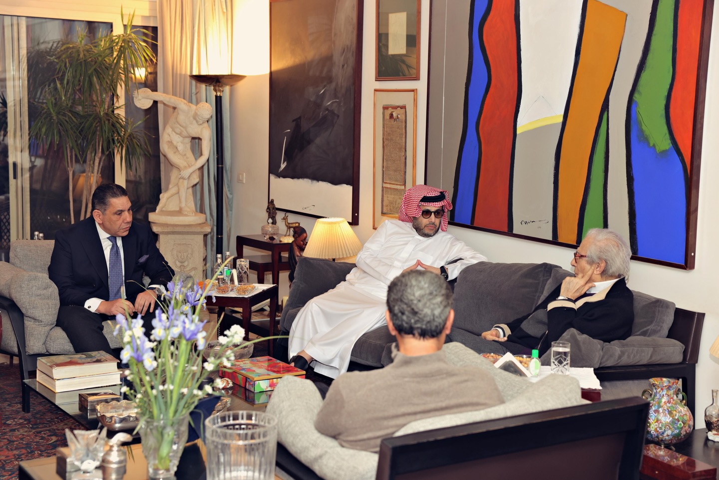 زار رئيس هيئة الترفيه بالمملكة العربية السعودية، تركي آل الشيخ، فاروق حسني وزير الثقافة الأسبق، بمنزله في القاهرة، بعد تكريمه مؤخرًا في حفل جوي أووردز بالرياض.