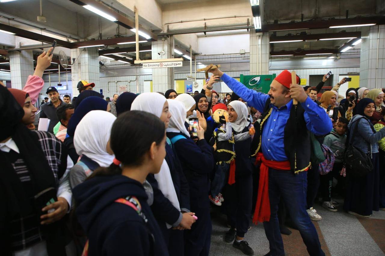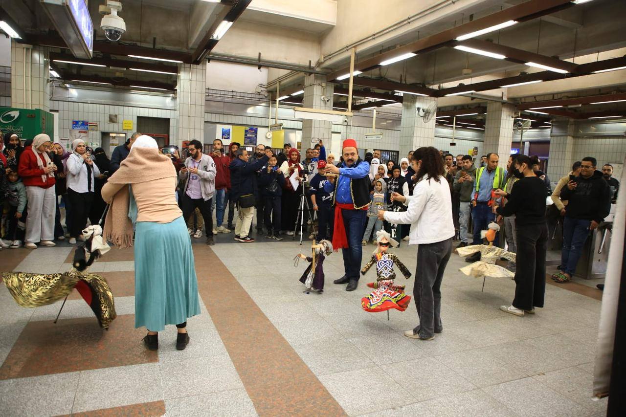 في مشهد مبهج داخل محطات مترو الأنفاق، فوجئ ركاب محطة مترو جامعة القاهرة صباح اليوم الأربعاء، بعروض حية لفنون العرائس، ومشاهد لأشهر شخصيات «الليلة الكبيرة»، في نشاط ثقافي فريد نظمته وزارة الثقافة المصرية تحت رعاية الدكتورة جيهان زكي، وزيرة الثقافة، وبالتعاون مع وزارة النقل المصرية تحت قيادة الفريق كامل الوزير، وزير النقل، بهدف نقل الفنون إلى الفضاءات العامة، وزيادة وعي الجمهور بقيمتها الثقافية والتاريخية.