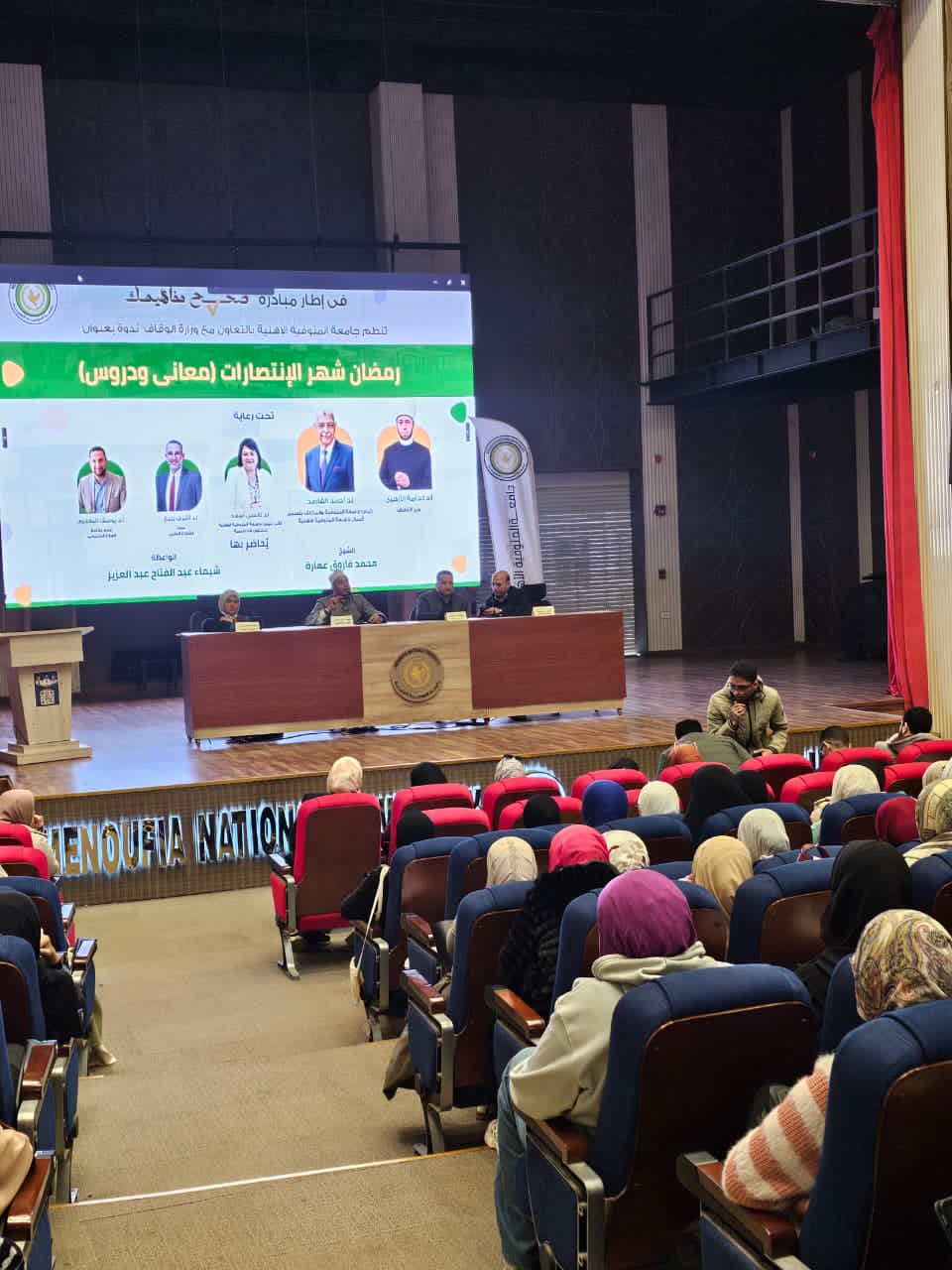 كما عُقدت بجامعة المنوفية الأهلية محاضرة بعنوان (رمضان شهر الانتصارات: معانٍ ودروس)، حاضر فيها الشيخ محمد فاروق إبراهيم عمارة، إمام وخطيب بالمديرية، والواعظة شيماء عبد الفتاح عبد العزيز – واعظة بوزارة الأوقاف، فيما استضافت جامعة المنوفية محاضرة بعنوان (أخلاقيات الطالب الجامعي)، حاضر فيها الشيخ عبد الله كامل الحجازي، إمام وخطيب بوزارة الأوقاف، والواعظة رشا عبد الفتاح نصار، واعظة بوزارة الأوقاف.