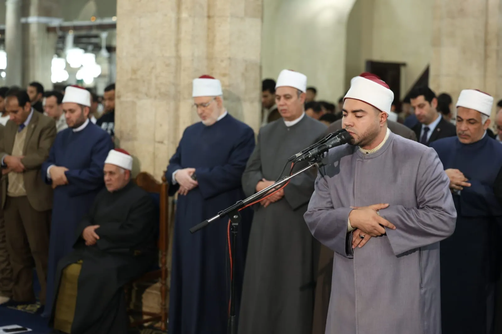 وتقدَّم صفوف المصلين فضيلة أ.د/ محمد الضويني وكيل الأزهر، وفضيلة أ.د/ عباس شومان، الأمين العام لهيئة كبار العلماء، والدكتور عبد المنعم فؤاد المشرف العام على الأروقة العلمية بالجامع الأزهر، والدكتور هاني عودة، مدير الجامع الأزهر، الدكتور سلامة داوود، رئيس جامعة الأزهر، إلى جانب لفيف من علماء الأزهر الشريف وقياداته، حيث شاركوا جموع المصلين الدعاء والتضرع إلى الله تعالى أن يتقبل صالح الأعمال، وأن يعمَّ الخير والبركة على مصر والأمة الإسلامية.