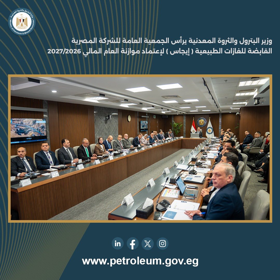 من جانبه، استعرض المهندس سيد سليم، العضو المنتدب التنفيذي للشركة ونوابه، ملامح خطة العام المالي 2026/2027، التي تتضمن طرح مزايدة جديدة للبحث عن الغاز خلال عام 2026 في عدد من قطاعات غرب البحر المتوسط، إلى جانب حفر 17 بئرًا استكشافية خلال العام المالي المقبل، والبدء في تنفيذ المرحلة الأولى من مشروع المسح السيزمي بشرق المتوسط خلال النصف الثاني من العام.