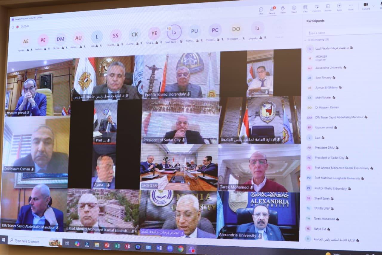 حضر الاجتماع من مقر وزارة التعليم العالي بالعاصمة الجديدة، الدكتور السيد قنديل رئيس جامعة العاصمة، والدكتور محمد ضياء زين العابدين رئيس جامعة عين شمس، والدكتور محمد سامي عبدالصادق رئيس جامعة القاهرة، والدكتور مصطفى رفعت أمين المجلس الأعلى للجامعات، والدكتور عبدالوهاب عزت أمين مجلس الجامعات الخاصة، والدكتور ماهر مصباح أمين مجلس الجامعات الأهلية والدكتور عادل عبدالغفار المستشار الإعلامي والمتحدث الرسمي للوزارة، بينما شارك باقي رؤساء الجامعات وأعضاء المجلس عبر تقنية «الفيديو كونفرانس».