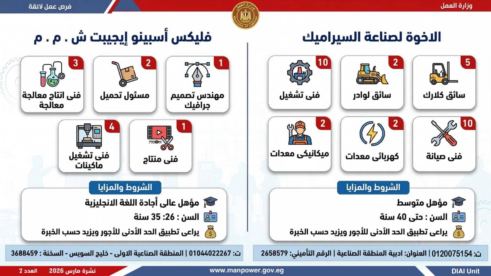 تتضمن أحدث الفرص المتوفرة على مستوى الجمهورية، نتاج تعاون مشترك بين مديريات العمل والقطاع الخاص بالمحافظات.