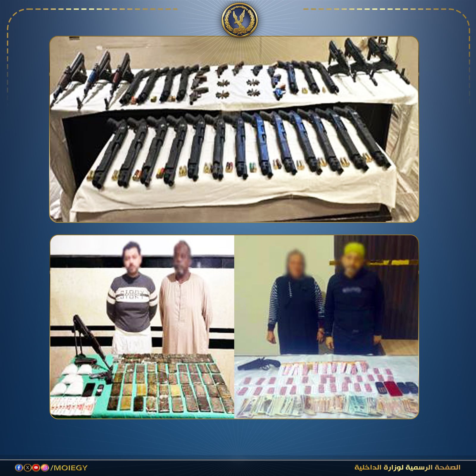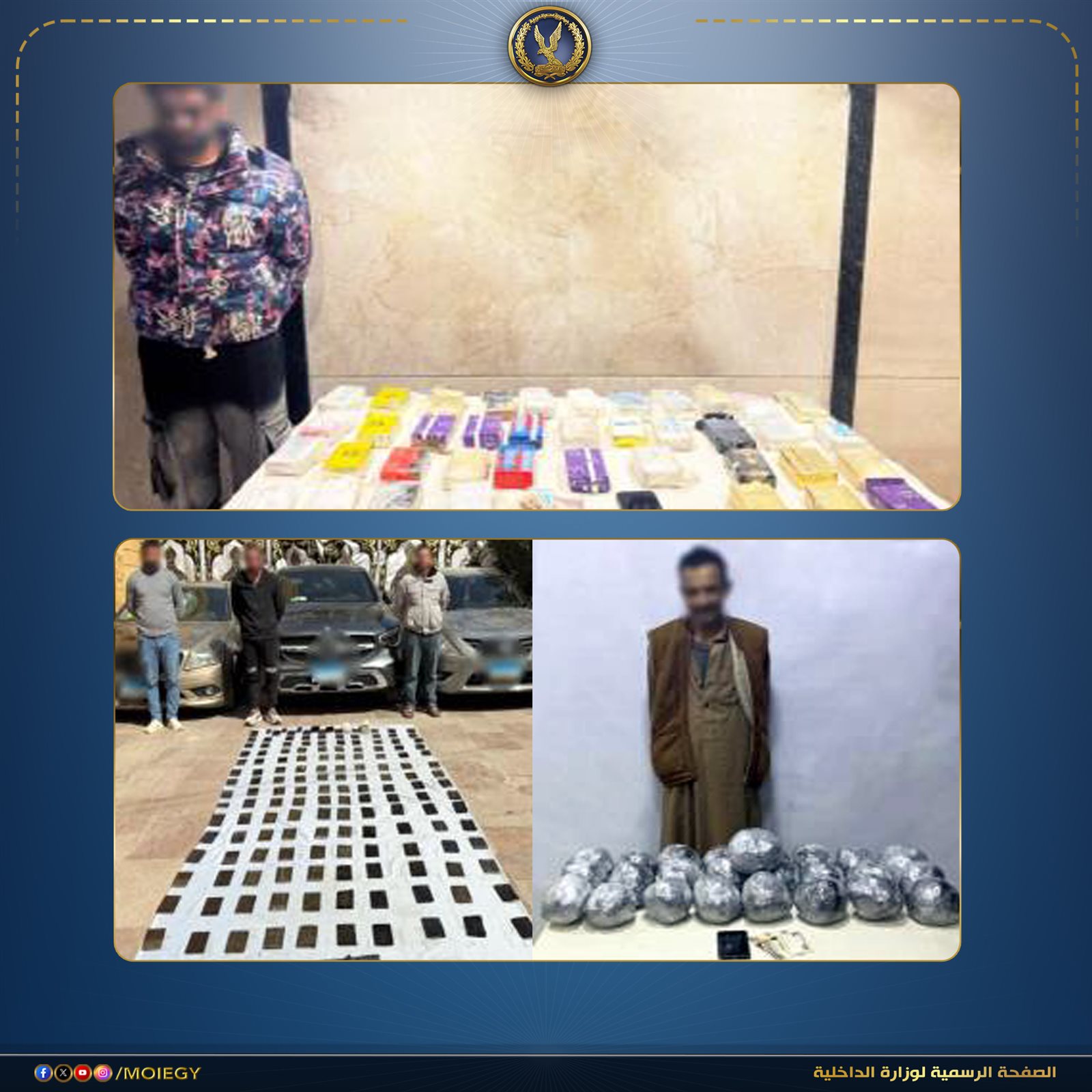 عقب تقنين الإجراءات تم استهدافهم بمشاركة قطاع الأمن المركزي، وأمكن ضبط عناصر تلك البؤر وبحوزتهم (قرابة 800 كيلو جرام من المواد المخدرة المتنوعة "حشيش، هيدرو، شادو، آيس "شابو" - هيروين، كوكايين"- قرابة 14 ألف قرص مخدر- 131 قطعة سلاح ناري "22 بندقية آلية، 48 بندقية خرطوش، 59 فرد خرطوش، 2 طبنجة").