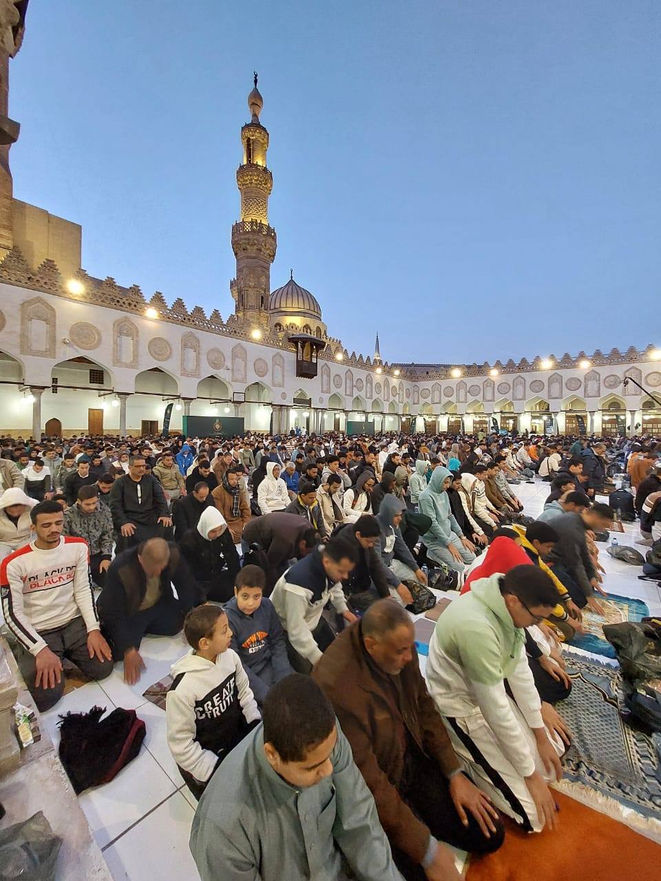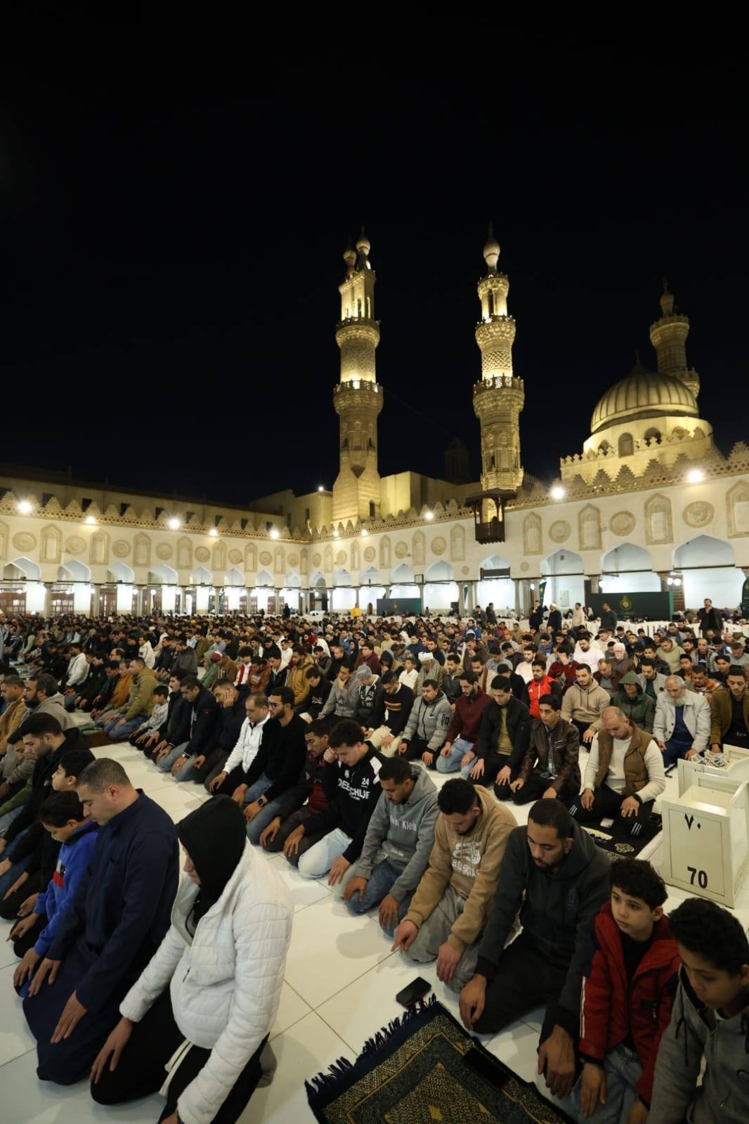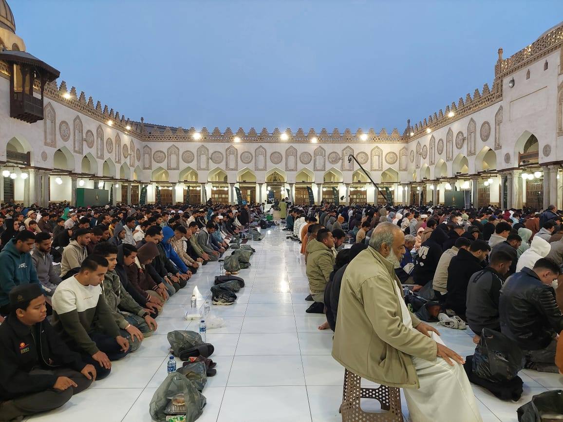 وجاءت ثالث تلك المحاور المهمة خلال الشهر المبارك، شعائر وصلاة التراويح بالقراءات العشر، حيث أقيمت صلاة التراويح بالجامع الأزهر هذا العام بواقع ٢٠ ركعة يومياً، تميزت بتلاوتها بالقراءات العشر الكبرى، لتعريف المصلين بتراث القراءات القرآنية المتنوعة، وفي العشر الأواخر، أُقيمت صلاة التهجد بواقع (٨) ركعات كل ليلة، لتكتمل الأجواء الإيمانية في ليالي العتق من النار.