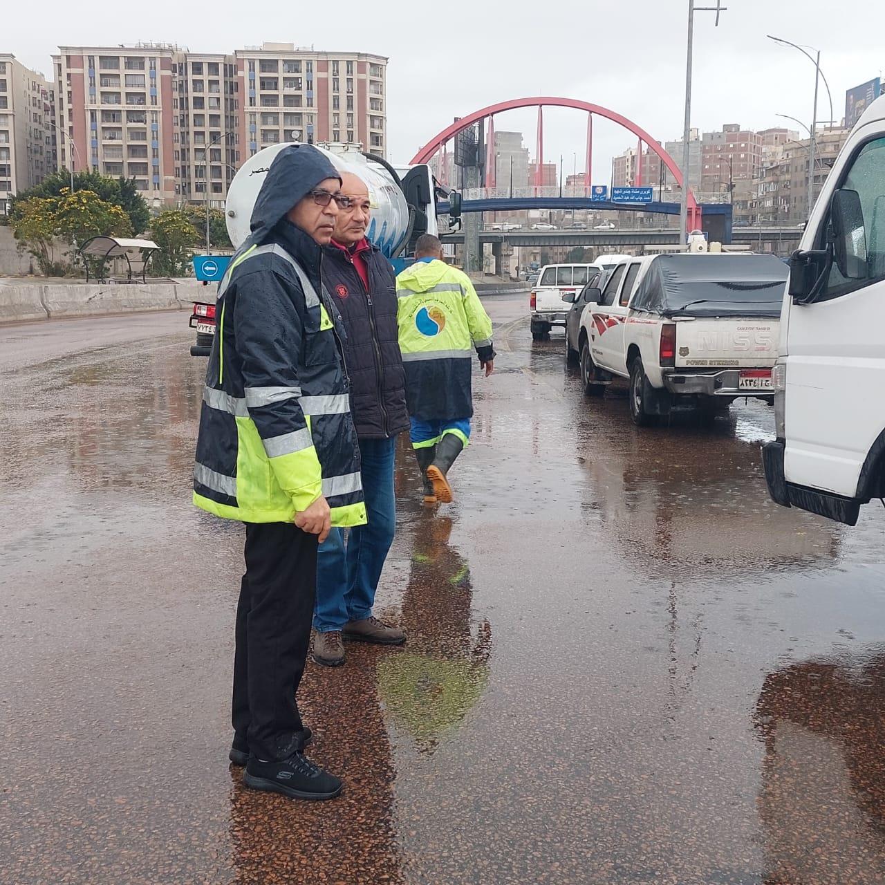 مازالت محافظة الإسكندرية تتعرض لموجة من الأمطار الغزيرة، وسط انتشار مكثف لفرق شركة الصرف الصحي بجميع أحياء المحافظة، للتعامل الفوري مع تجمعات مياه الأمطار ورفعها أولًا بأول.