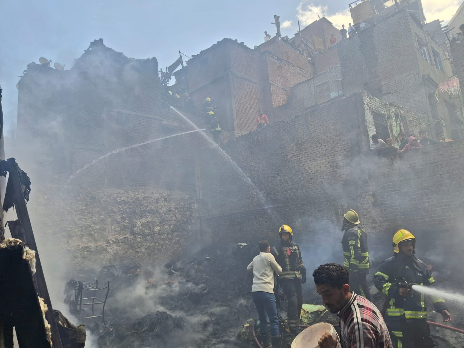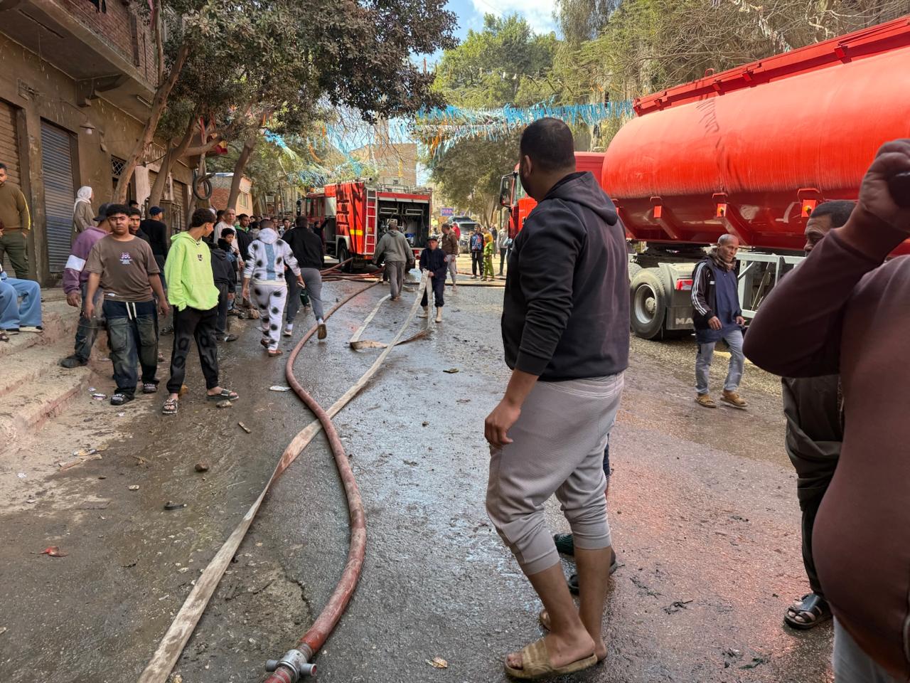 وعلى الفور انتقلت قوات الحماية المدنية، والإسعاف، والقيادات الأمنية، وجميع الأجهزة التنفيذية بالمحافظة لموقع الحادث وتم السيطرة عليه والاطفاء بواسطة ٤ سيارات إطفاء، وسيارة خزان، كما اشتعل حريق محدود بالعقار المجاور للمخزن وتم اطفاءه وجارى عمليات التبريد.
