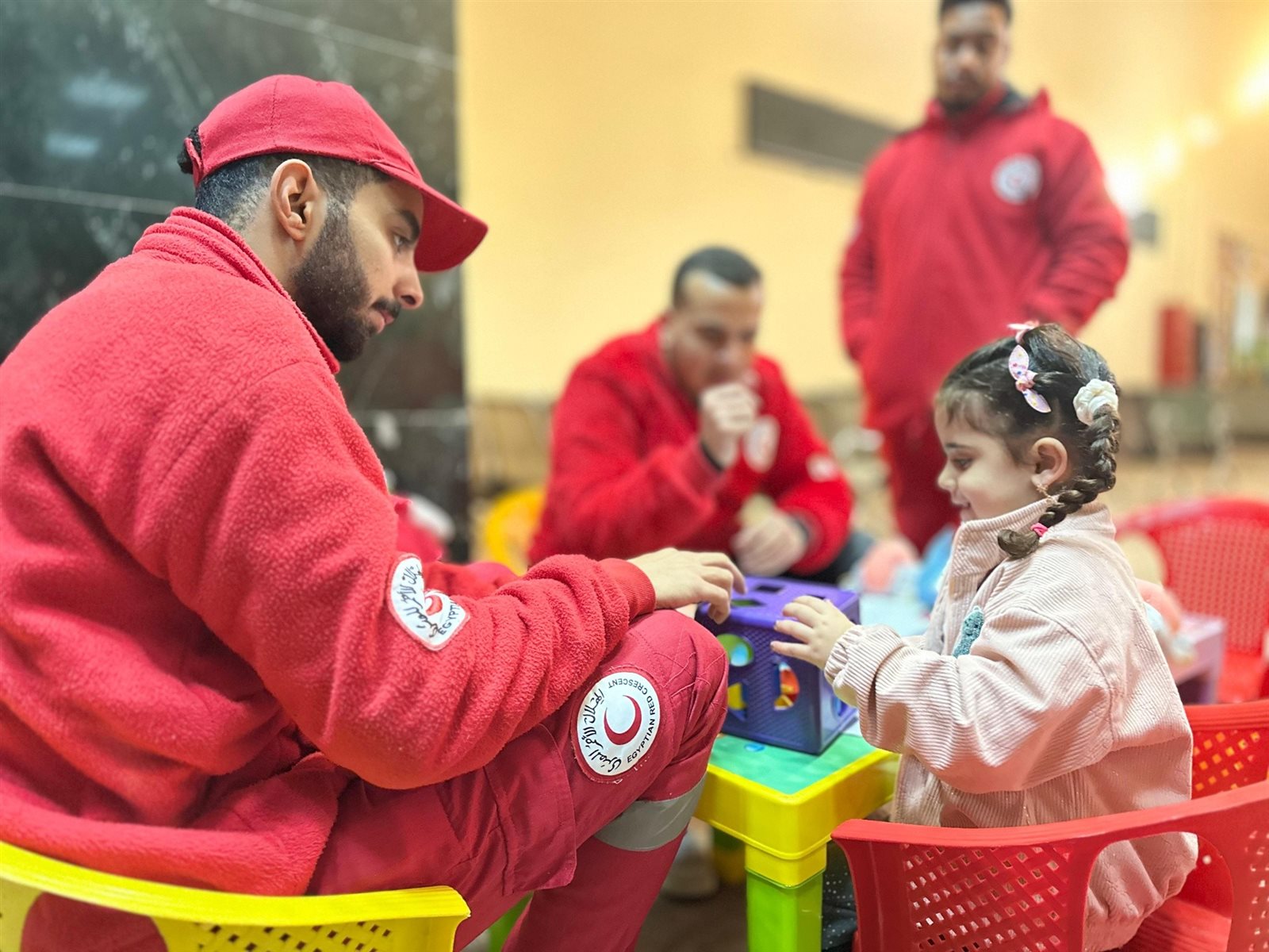 وواصل الهلال الأحمر المصري، جهوده الإنسانية في استقبال وتوديع الأشقاء الفلسطينيين وتيسير إجراءات العبور، حيث انتشرت الفرق على معبر رفح من الجانب المصري؛ لتقديم الخدمات الإغاثية والتي شملت الدعم النفسي للأطفال، خدمات إعادة الروابط العائلية.