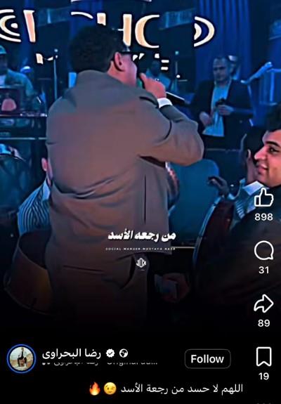 ونشر البحراوي فيديو له من أخر حفلاته التي أقيمت خلال الايام الماضية، وعلق، قائلا: " اللهم لا حسد من رجعة الأسد ".