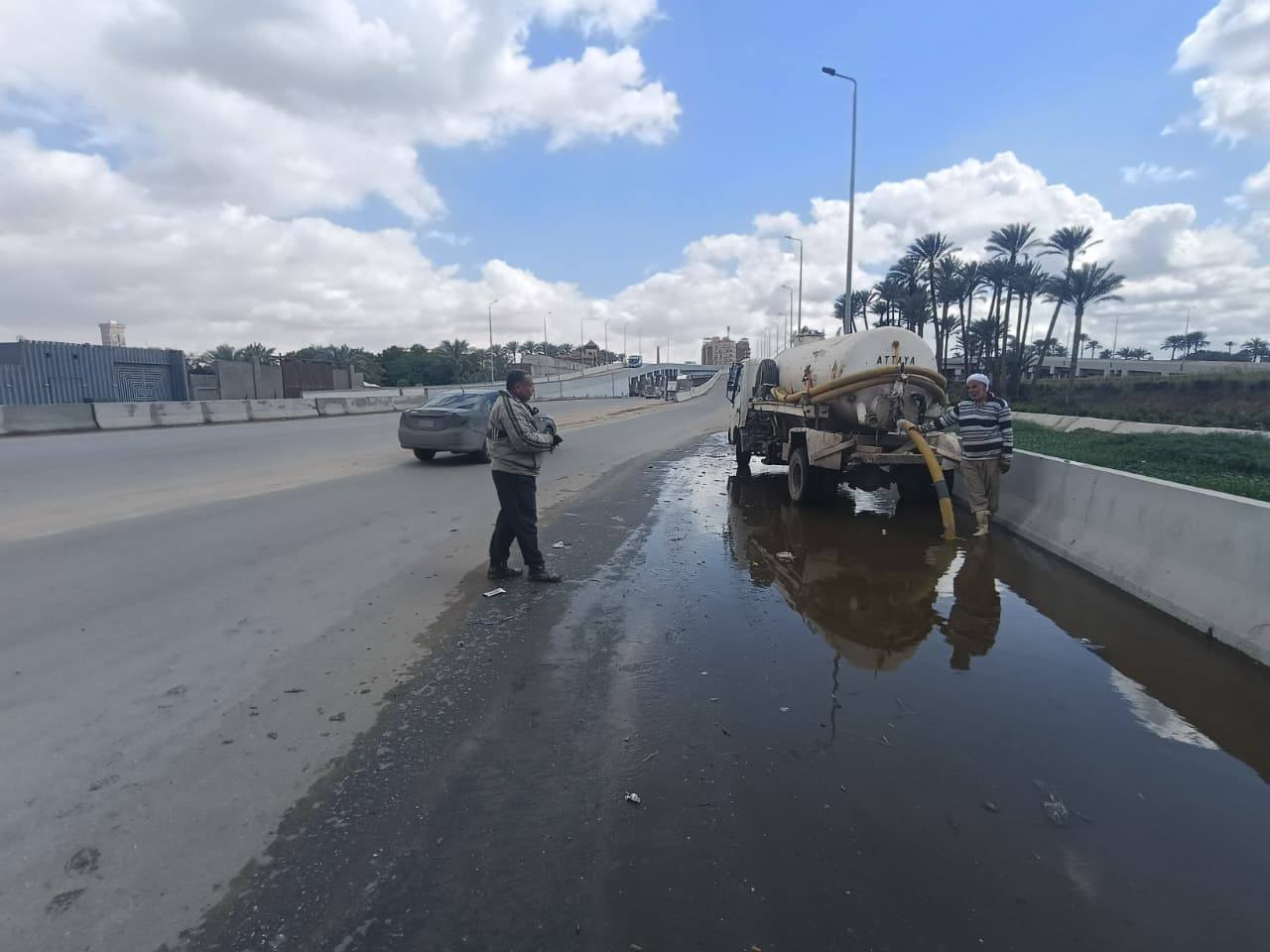 حيث أكد نائب المحافظ بأنه تم الدفع بالمعدات وسيارات الشفط للتعامل الفوري مع تجمعات المياه بما يضمن تحقيق السيولة المرورية وعدم تأثر حركة المواطنين، مشددا باستمرار أعمال سحب المياة وتجريد الطرق ومداخل القري حتي الانتهاء التام من كافة النقاط المتأثرة.