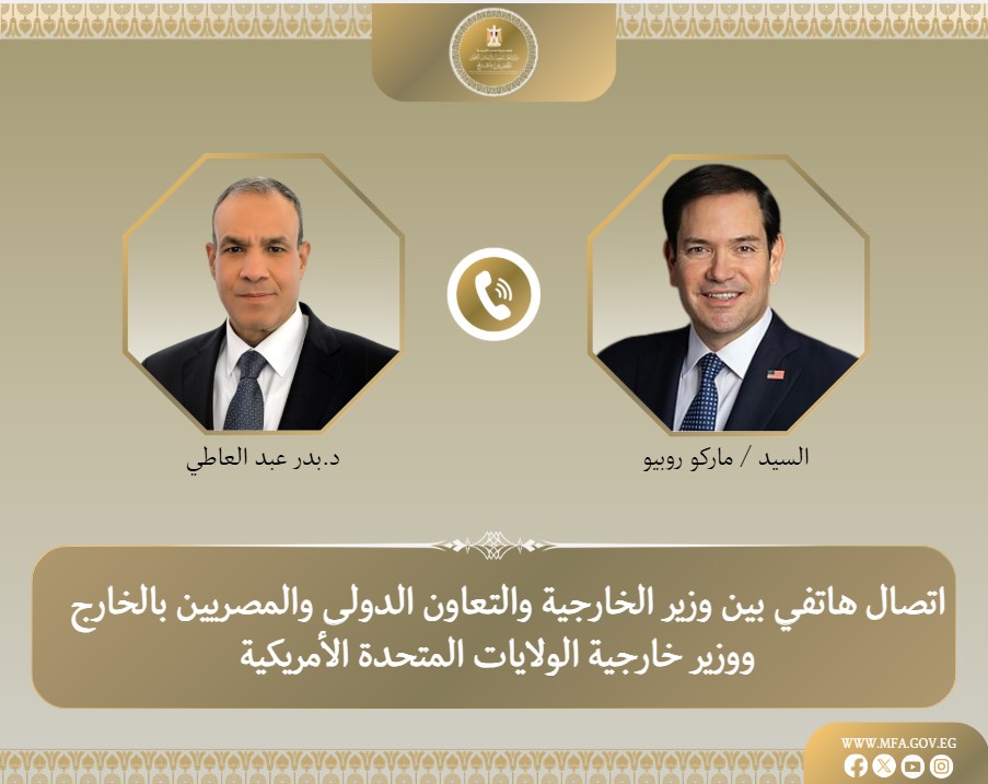 جرى اتصال هاتفي بين الدكتور بدر عبدالعاطي، وزير الخارجية والتعاون الدولي والمصريين بالخارج، وماركو روبيو، وزير خارجية الولايات المتحدة الأمريكية.