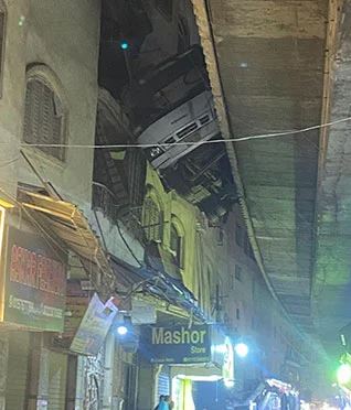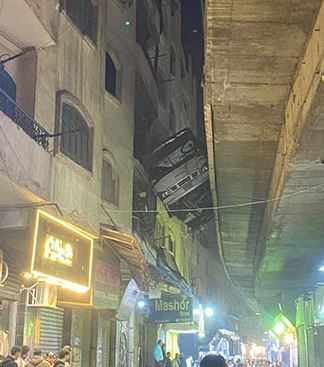 «5 مصابين».. الدفع بمعدات لسحب الأتوبيس العالق بين منزل والطريق الدائري بالجيزة