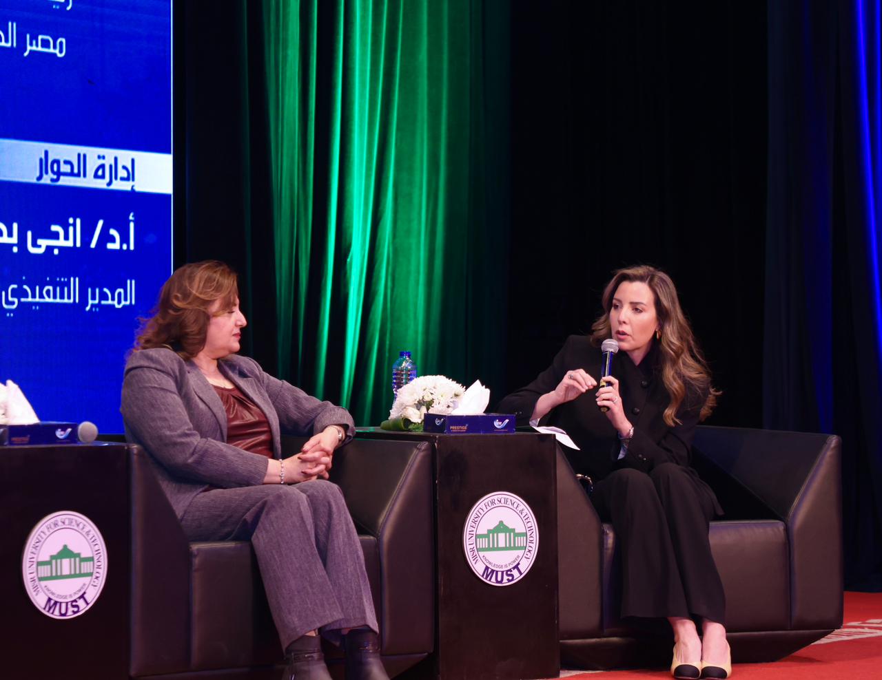 واستعرضت المديرة التنفيذية لصندوق «قادرون باختلاف» خلال مشاركتها في جلسة «التعليم الجامعي كأداة للتمكين الاجتماعي والاقتصادي» بحضور الدكتورة محاسن فرغلي رئيسة جامعة مصر الدولية، والدكتورة هالة المنوفي رئيسة جامعة مصر للعلوم والتكنولوجيا، ودكتورة أماني عصفور عضو المجلس القومي للمرأة، المهام التي يعمل عليها صندوق «قادرون باختلاف».