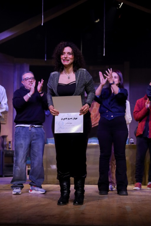 وعقب انتهاء العرض كرمت الدكتورة انجي البستاوي والدكتور حاتم حافظ، مجموعة من طلاب وخريجي المعهد الذين تألقوا في رمضان الماضي وهم: الدكتورة هايدي عبيد الخالق، والفنان محمد ناصر، والفنان أحمد أبو زيد.
