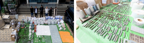 عقب تقنين الإجراءات تم إعداد الأكمنة اللازمة واستهدافهم وضبط عناصر التشكيل بنطاق محافظتى "القاهرة ، والجيزة" وبحوزتهم قرابة واحد ونصف مليون قرص مخدر و420 كيلو جرام من المواد المستخدمة فى إعادة التدوير - الأدوات والمعدات المستخدمة).