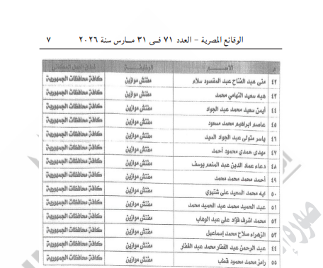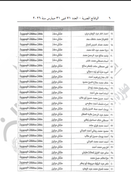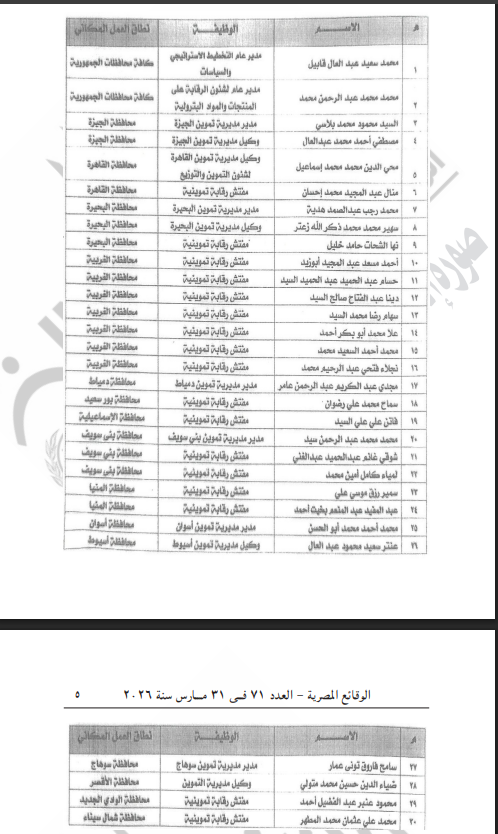 ونصت المادة المادة الثانية على أن تعدل المسميات الوظيفية لبعض مأموري الضبط القضائي من العاملين بوزارة التموين والتجارة الداخلية الواردة أسماؤهم ضمن أسماء العاملين السابق تحويلهم صفة مأموري الضبط القضائي بموجب المادة الرابعة من قرار وزير العدل رقم (٦٩٠٧) الصادر في ٢٠٢٥/١١/١٨، بالنسبة للجرائم التي تقع بالمخالفة لأحكام القانون رقم ٦٨ لسنة ١٩٧٦ بشأن الرقابة على المعادن الثمينة والقانون رقم ١ لسنة ١٩٩٤ بشأن الوزن والقياس والكيل، ليكون على النحو التالي: