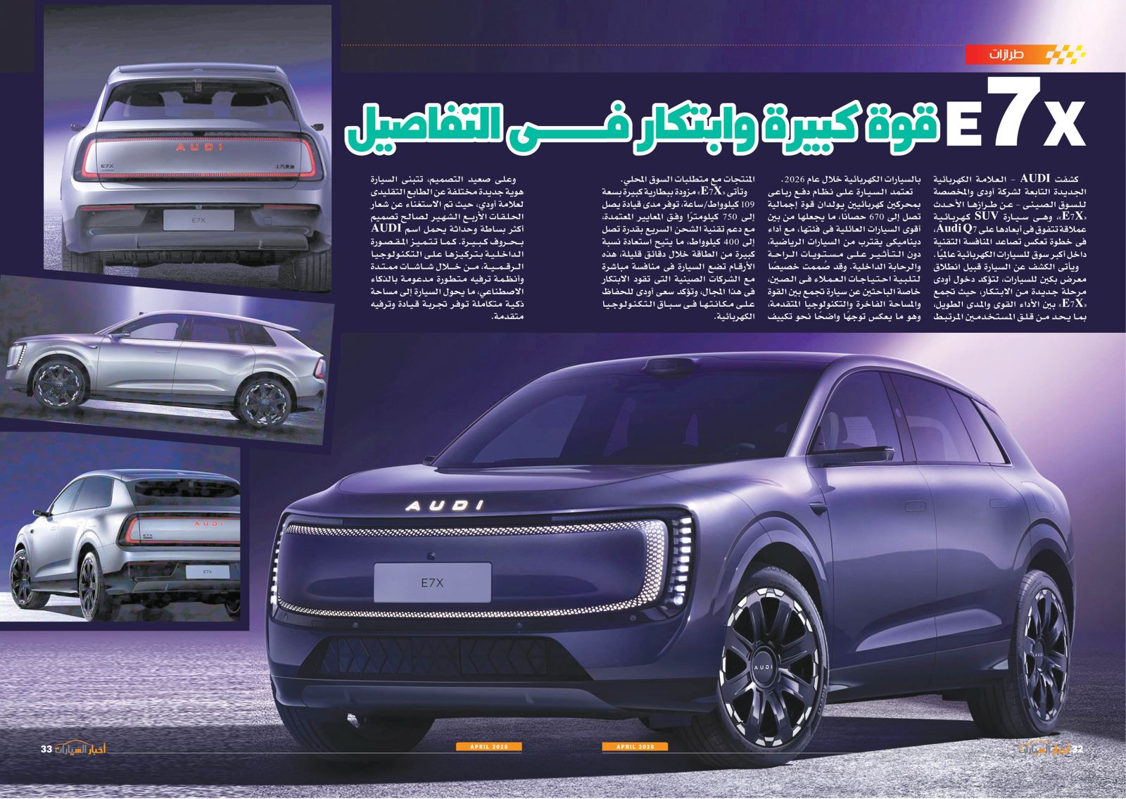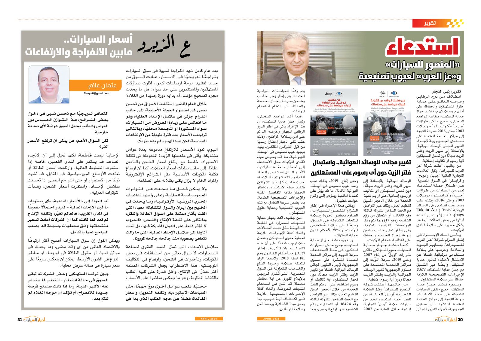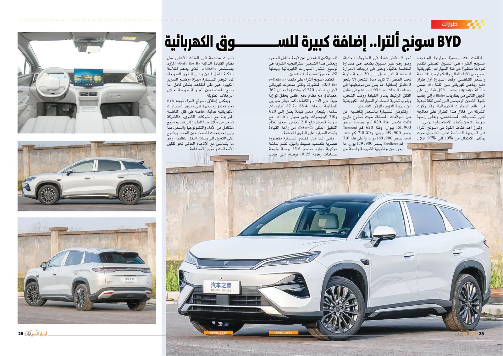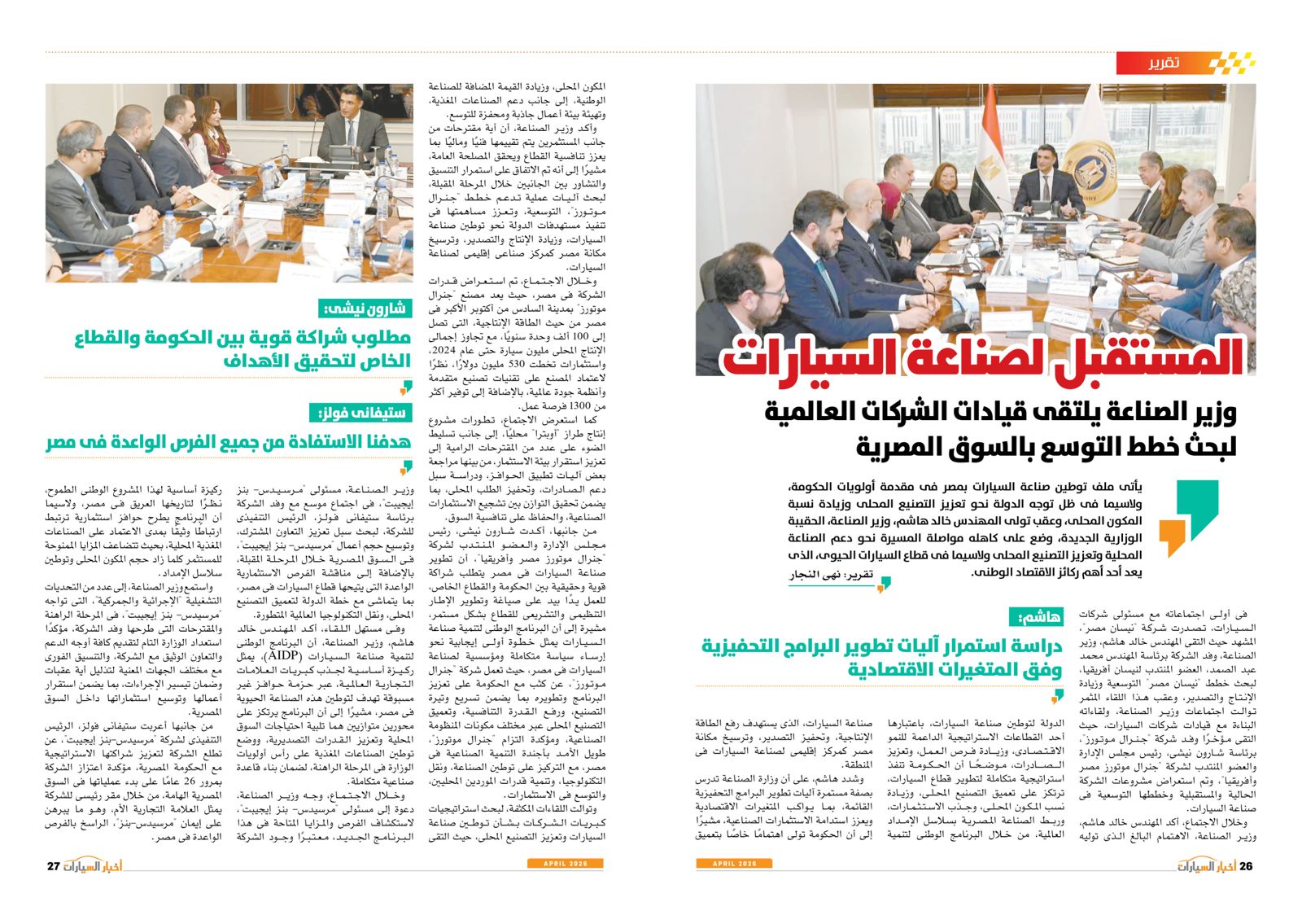 ومن بين التقارير في العدد أيضًا: عودة الأوفر برايس، EV2 من كيا.. حضور كبير في السيارات الكهربائية، توطين صناعة السيارات والصناعات المغذية أهم الأهداف الحكومية، إنفينيتي QX65.. عصر جديد بقوة 268 حصانًا، المستقبل لصناعة السيارات، BYD سونج ألترا.. إضافة كبيرة للسوق الكهربائية، استدعاء المنصور للسيارات وعزب العرب لعيوب تصنيعية، E7X.. قوة كبيرة وابتكار في التفاصيل، صدمة الحرب، أتوبيسات مصرية تنير القارة السمراء، كايين S الكهربائية.. تجربة قيادة مختلفة من بورش، QQ3 من شيري.. سهولة في الحركة وقت الزحام.