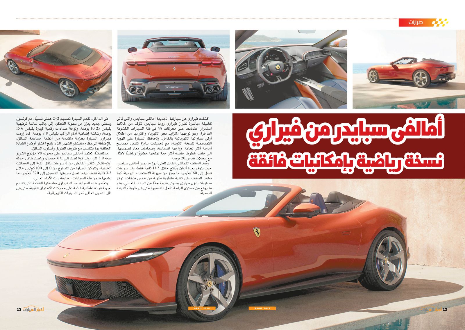 كما ضم العدد مجموعة من التقارير من بينها: Subaru E-Outback.. أداء كبير لمحبي المغامرة، N°7.. الفخامة والابتكار في وقت واحد، MGS9.. مساحة واسعة وتقنيات حديثة، VLE.. إبداع جديد من مرسيدس، أزمة رقائق، Renault R-Space-Lab.. ابتكار في كل التفاصيل، أمالفي سبايدر من فيراري.. نسخة رياضية بإمكانيات فائقة، و لاك هونج 800S و900S.. منافسة شرسة في عالم السيارات الكهربائية.