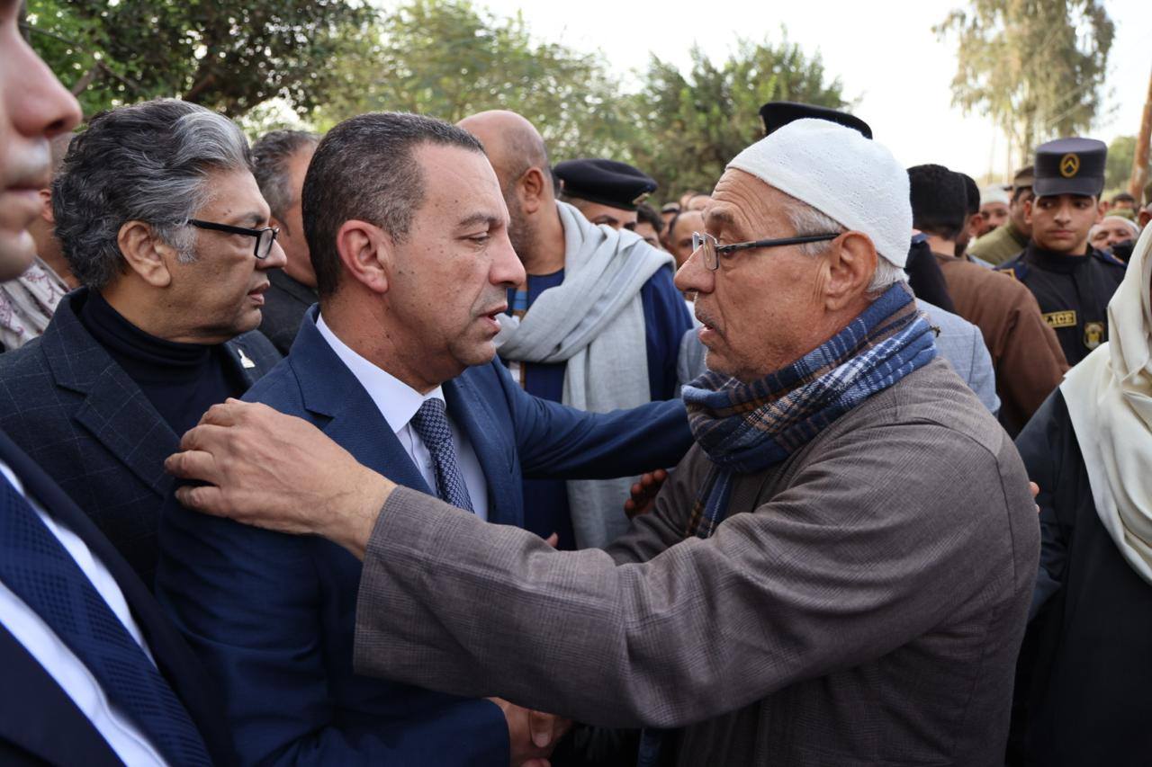 محافظ المنوفية يتقدم جنازة ضحايا حادث السادات بمسقط رأسهم بمدينة تلا ويقدم واجب العزاء لأسرهم «صور»