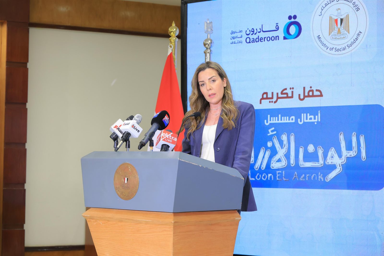 شهدت الدكتورة مايا مرسي وزيرة التضامن الاجتماعي حفل تكريم أبطال مسلسل " اللون الأزرق" التي نظمتها الوزارة بالتعاون مع صندوق "قادرون باختلاف" بالتزامن مع اليوم العالمي للتوعية باضطراب طيف التوحد.