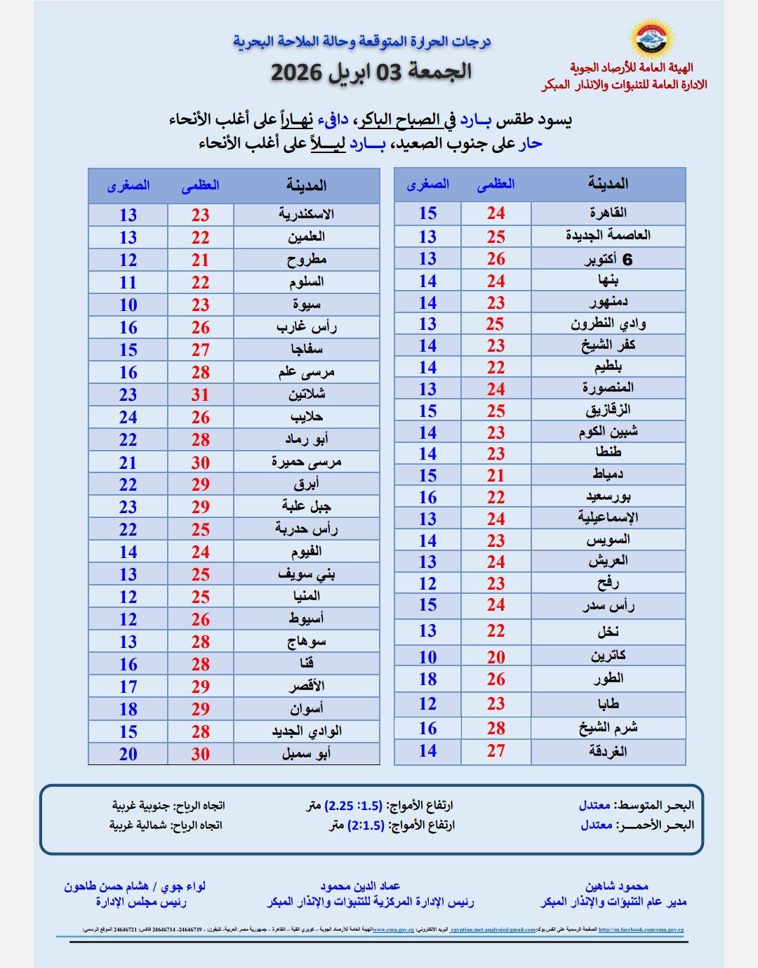 درجات الحرارة المتوقعة اليوم