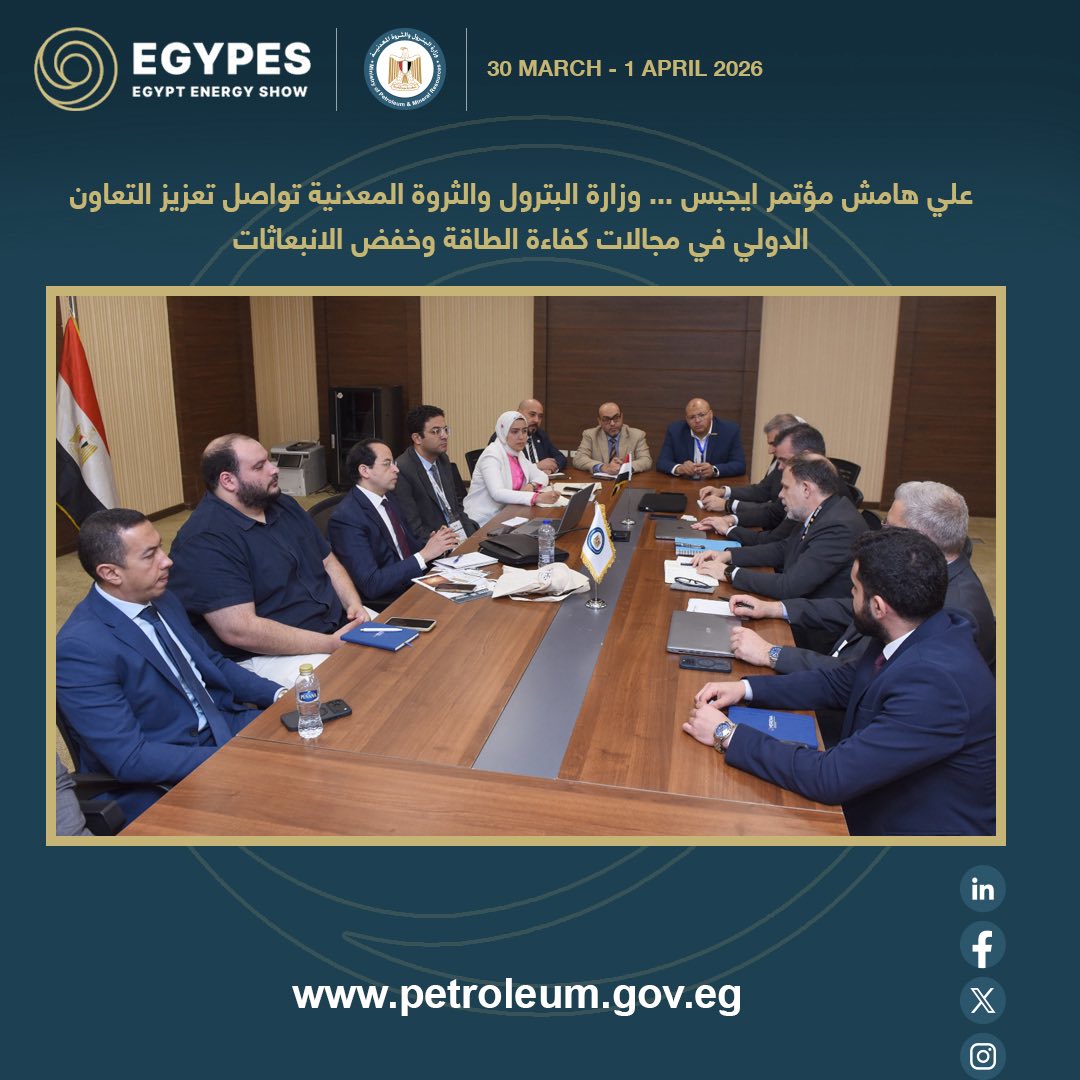 في سياق متصل، عقد وكيل وزارة البترول سلسلة من الاجتماعات الثنائية مع مسؤولي البنك الدولي والاتحاد الأوروبي، لبحث فرص التعاون في مشروعات خفض الانبعاثات، وزيادة كفاءة استخدام الطاقة، والتوسع في استخدام الطاقات المتجددة.