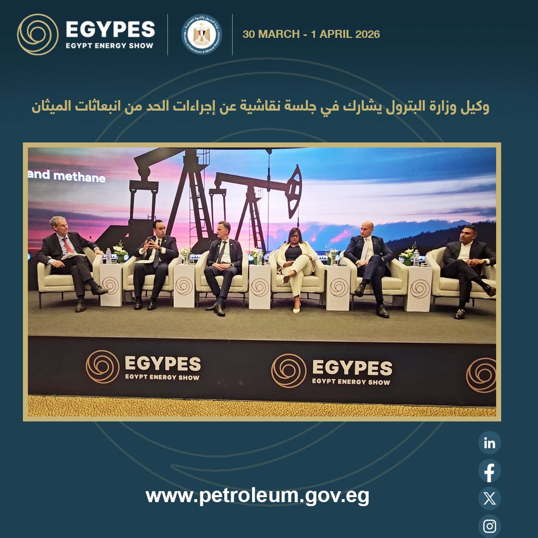 كما شارك وكيل وزارة البترول، في جلسة نقاشية بعنوان «اتخاذ إجراءات للحد من انبعاثات الكربون والميثان»، وذلك ضمن الجلسات الاستراتيجية لمؤتمر ايجبس.