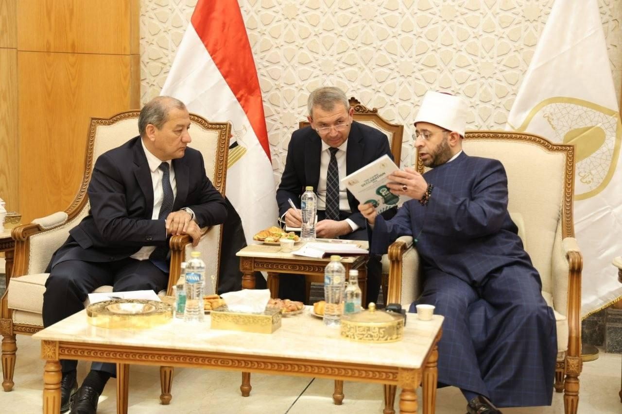 من جانبه، أعرب رئيس الوفد الأوزبكي عن سعادته بزيارة مصر، مؤكدًا أن العلاقات بين البلدين تمتد عبر عصور الحضارة الإسلامية، وتشهد في الوقت الراهن تطورًا ملحوظًا بفضل التقارب الثقافي وتبادل الزيارات، مشيرًا إلى تقدير بلاده الكبير لدور مصر في خدمة الإسلام والعلوم الإسلامية، كما أبدى تطلع بلاده إلى تعزيز التعاون في مجالات تدريب الكوادر الدينية، وزيادة أعداد الطلاب الأوزبكيين الدارسين في مصر، والاستفادة من الخبرات المصرية في مجالات التعليم الديني العالي، والبرامج المالية الإسلامية، وتطوير نظم الوقف والحماية الاجتماعية، وإحياء المخطوطات التي تمتلك بلاده منها أكثر من 100 ألف مخطوطة إسلامية لم تُدرس بعد، مؤكدًا الحاجة إلى التعاون مع المتخصصين المصريين للاستفادة من هذه الكنوز العلمية، إلى جانب تعزيز التعاون بين المراكز العلمية والثقافية في البلدين، لا سيما في مجالات الحضارة الإسلامية وخدمة التراث.