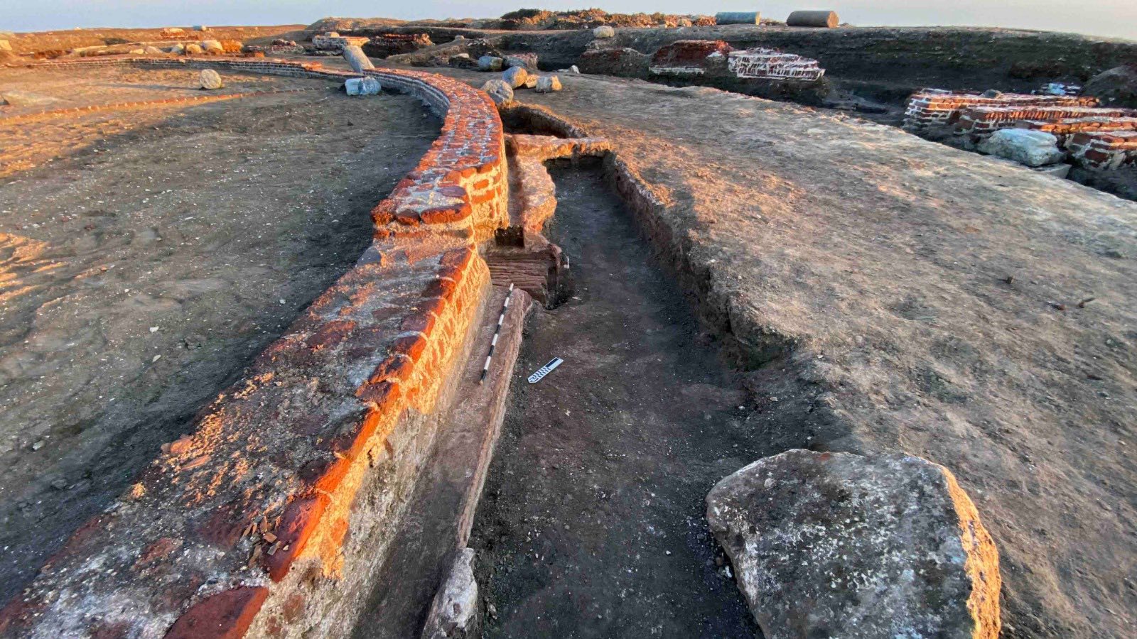 وأوضح الدكتور هشام حسين رئيس الادارة المركزية لآثار الوجه البحري وسيناء والمشرف على البعثة، أن بداية الكشف عن هذا المبنى يعود إلى عام 2019، حين عثرت البعثة على جزء لا يتجاوز 25% من منشأة دائرية مشيدة من الطوب الأحمر، ورُجّح حينها أنها تمثل مبنى مجلس الشيوخ بالمدينة. إلا أن استكمال أعمال الحفائر خلال المواسم اللاحقة أتاح الكشف الكامل عن المبنى، الذي تبيّن أنه ذو تصميم معماري ضخم ومعقّد، يتوسطه فناء دائري يبلغ قطره نحو 35 متراً، تحيط به قنوات وخزانات للمياه، مع مداخل متعددة من الجهات الشرقية والجنوبية والغربية، بينما تعرضت الجهة الشمالية لتدمير كبير.