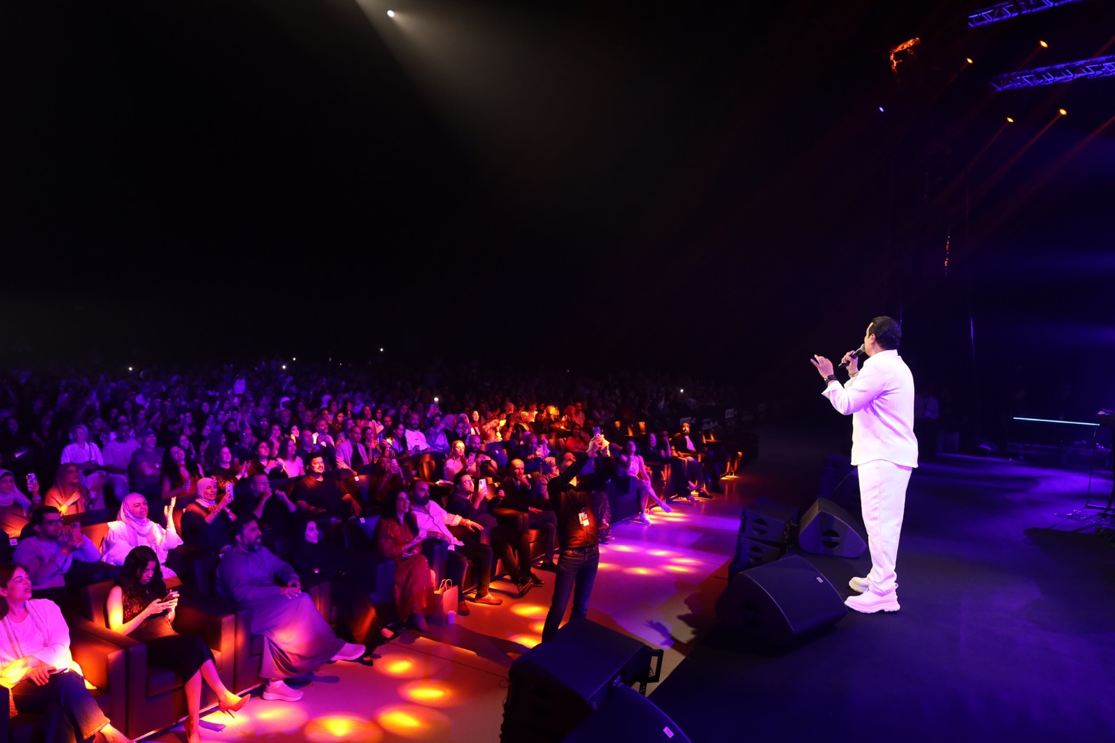 أحيا النجم إيهاب توفيق حفلًا غنائيًا ضخمًا في مدينة أبو ظبي، وسط حضور جماهيري كبير رفع شعار "كامل العدد".