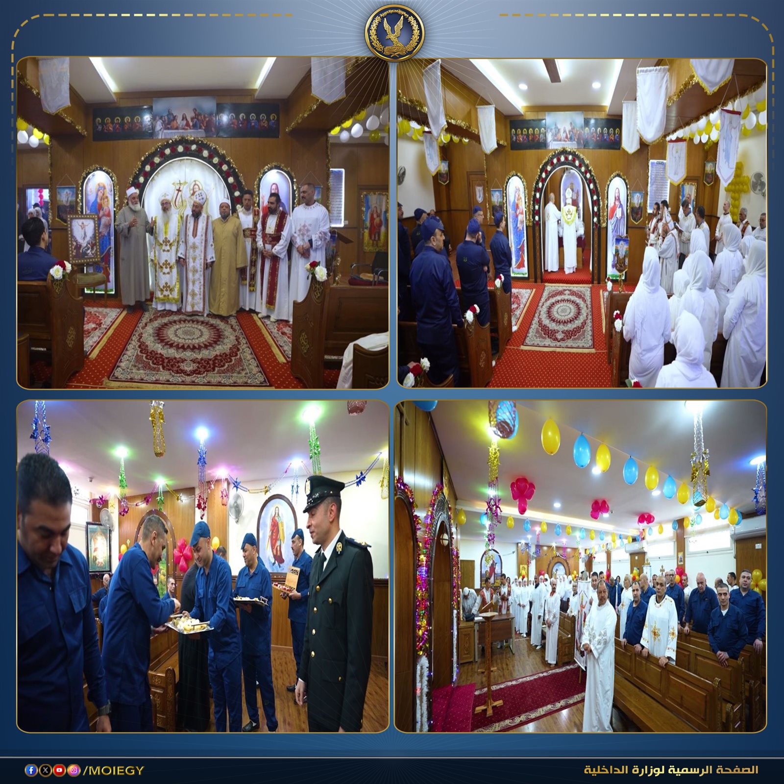 نظّم قطاع الحماية المجتمعية احتفالية بمناسبة عيد القيامة المجيد، حيث أُقيم قدّاس العيد داخل دور العبادة المسيحية المُنشأة بهذه المراكز، والتى تم تصميمها وفق أحدث المعايير التى تتيح للنزلاء ممارسة شعائرهم الدينية فى أجواء تفيض بالسكينة والروحانية.