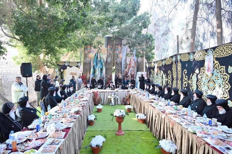 البابا تواضروس الثاني يلتقي أحبار الكنيسة على مائدة إفطار شم النسيم بدير السريان