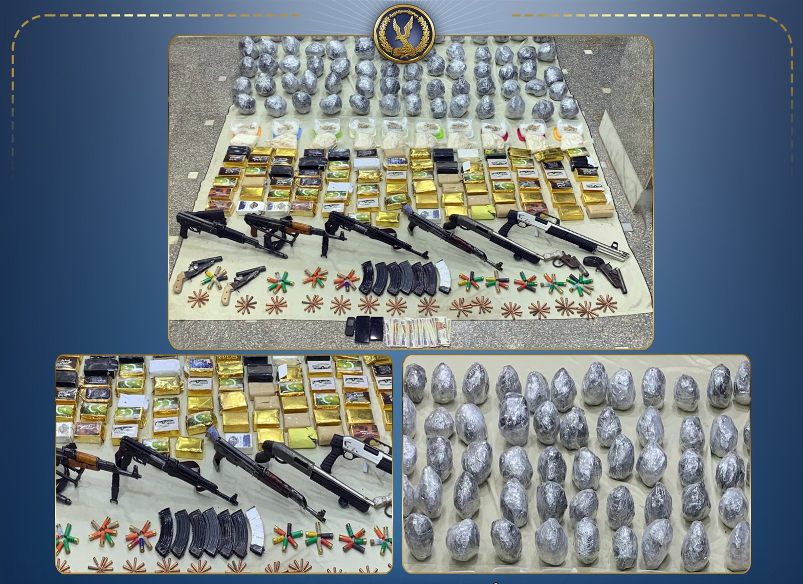 وعقب تقنين الإجراءات تم استهدافهم بمشاركة قطاع الأمن المركزي ، وحال استشعارهم بالقوات بادروا بإطلاق وابل من الأعيرة النارية تجاهها، وقد أسفر التعامل عن مصرعهم، وضبط بحوزتهم (140 كيلو جرام من المواد المخدرة المتنوعة - 10 قطع أسلحة نارية).