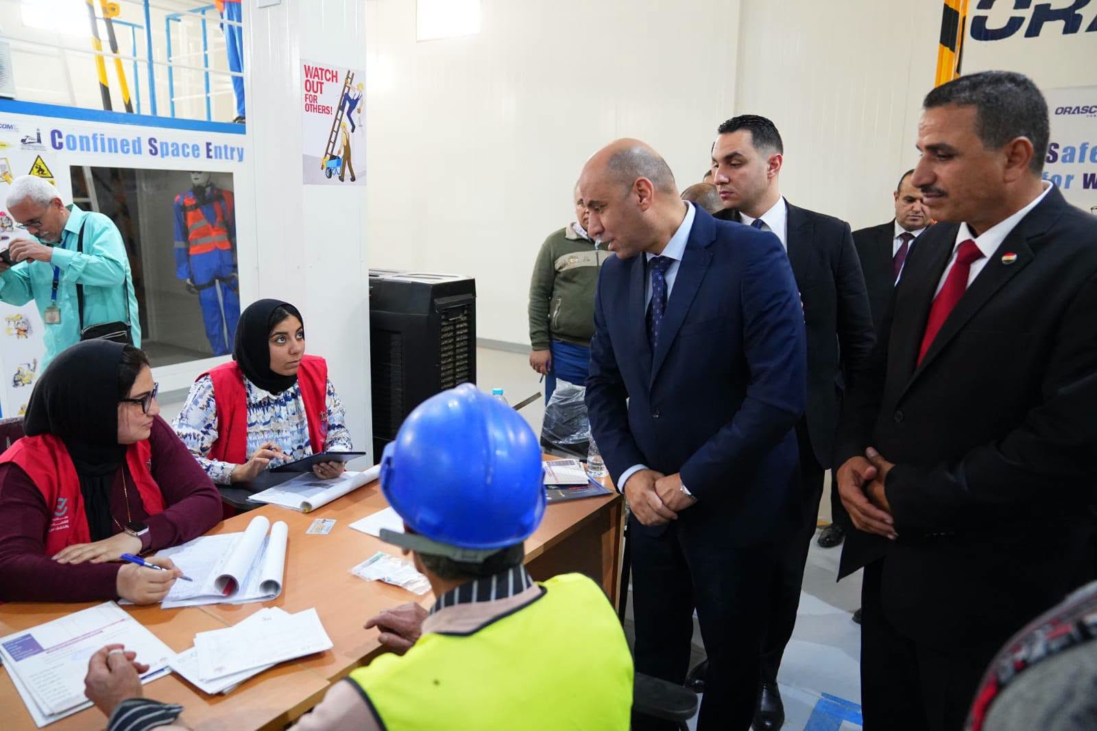 وتفقد وزير العمل، برامج التدريب المنفذة للعاملين داخل الموقع، والتي تشمل تدريبات نظرية وعملية على إجراءات السلامة والصحة المهنية في مواقع التشييد والبناء، إلى جانب التدريب على استخدام السقالات والأوناش والروافع ومعدات الوقاية الشخصية، كذلك التدريب على الإسعافات الأولية، وذلك في إطار نشر ثقافة الوقاية المهنية بين العاملين.