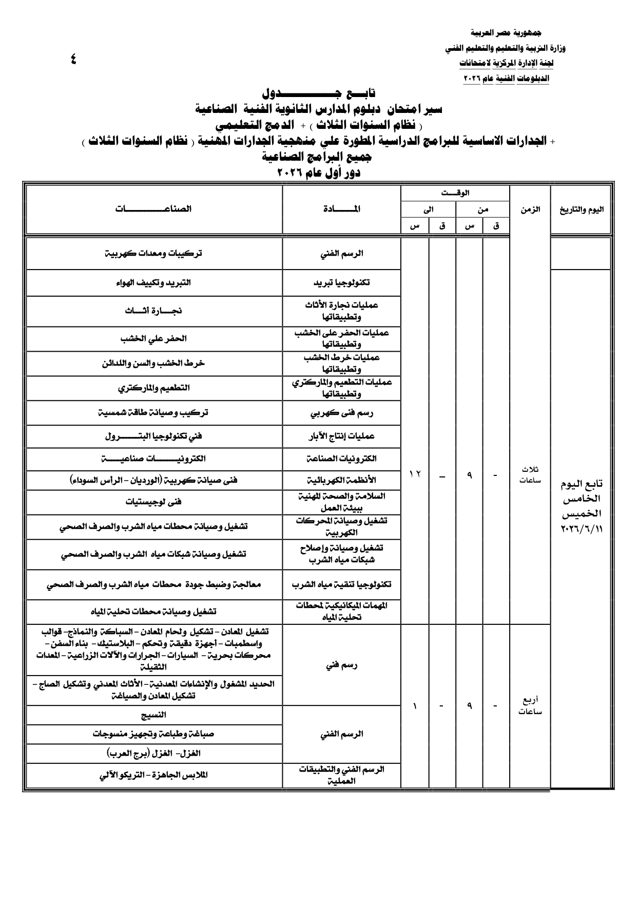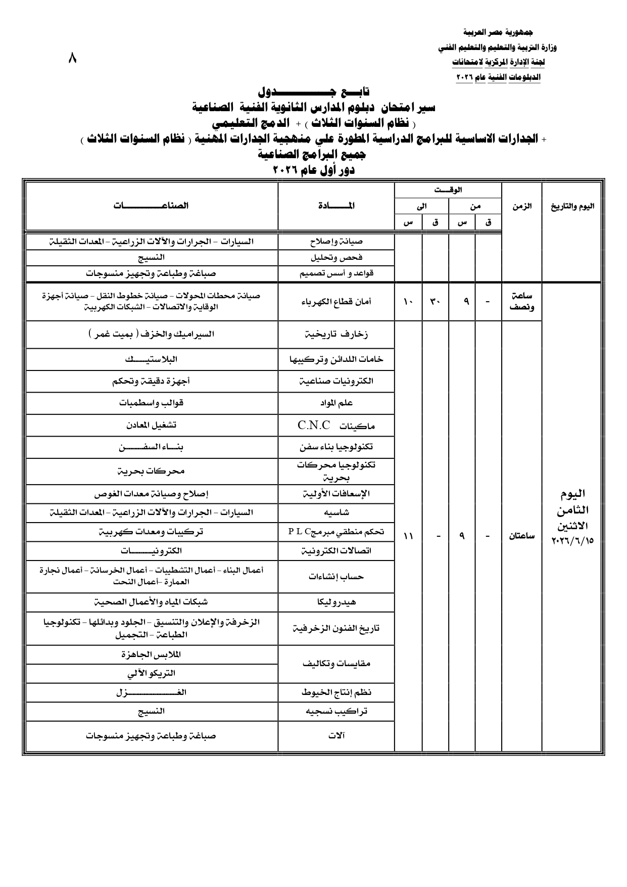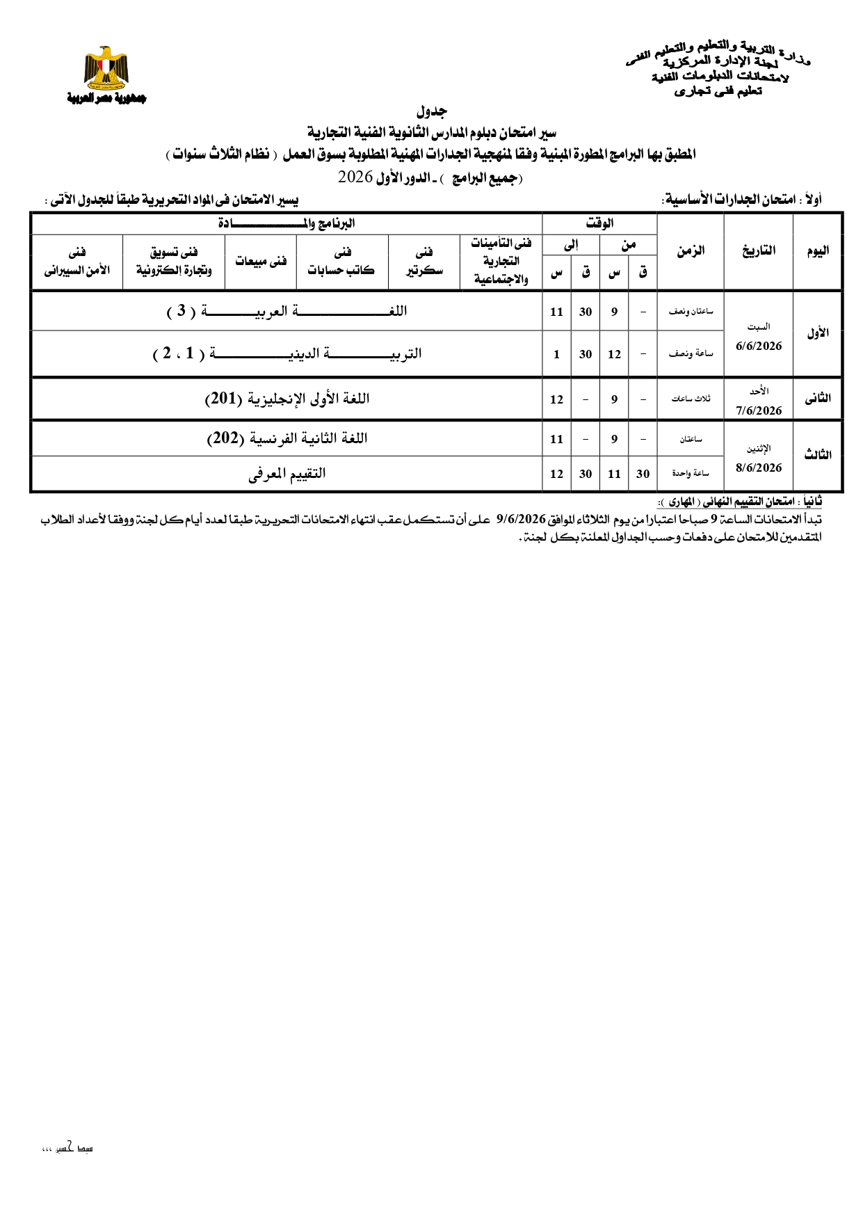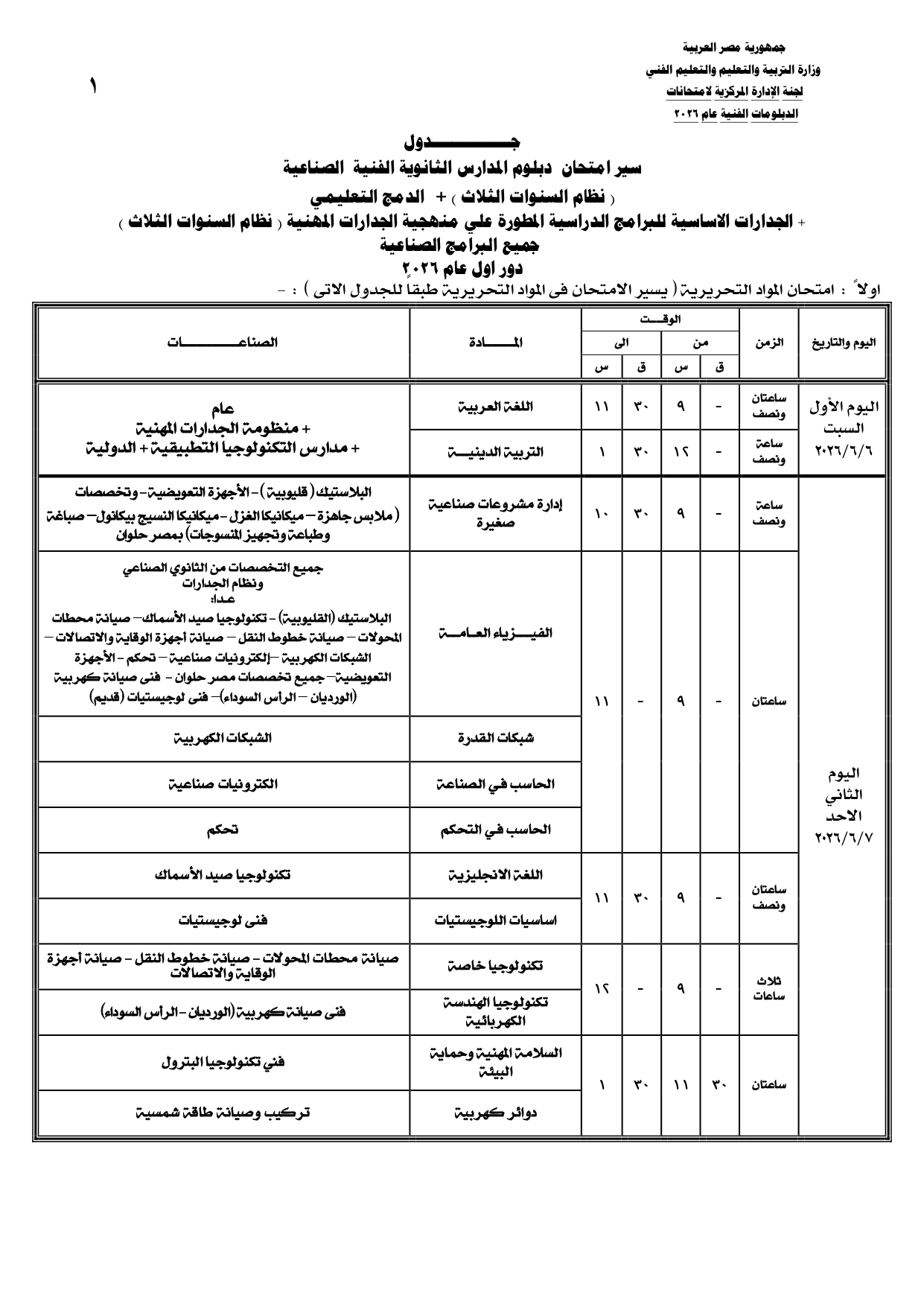 ومن المقرر أن تنطلق بداية امتحانات الدبلومات الفنية يوم السبت الموافق 6 يونيو 2026، وفقا للجداول المعلنة.
