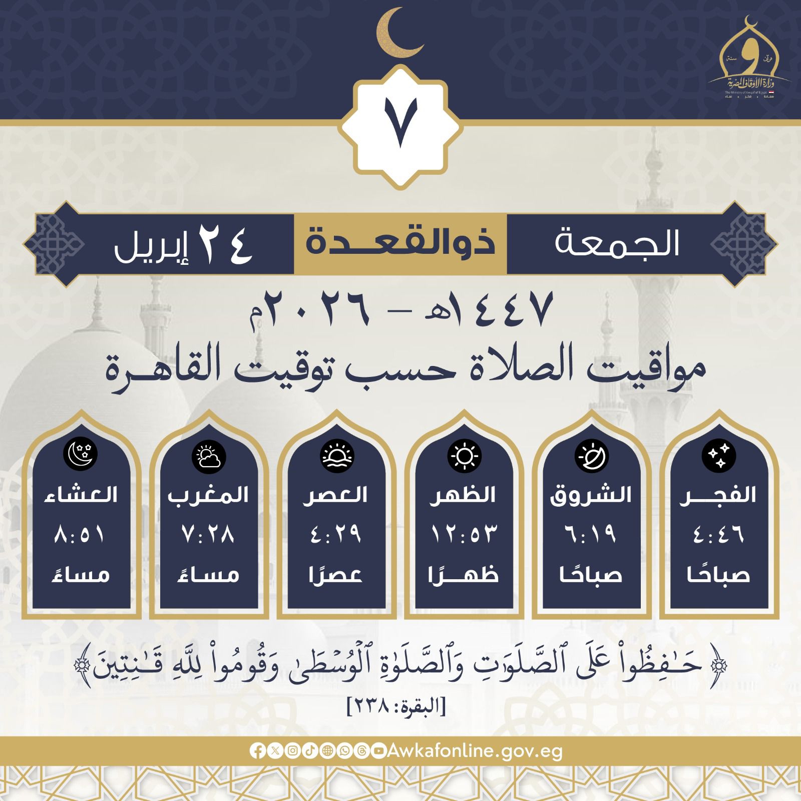 مواقيت الصلاة فى القاهرة