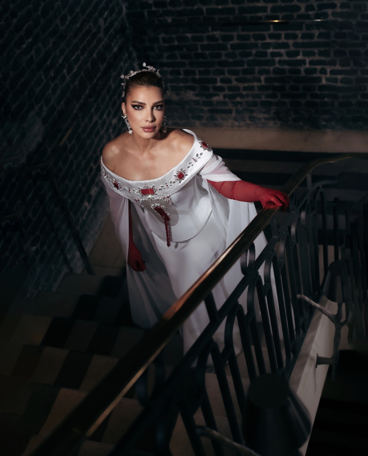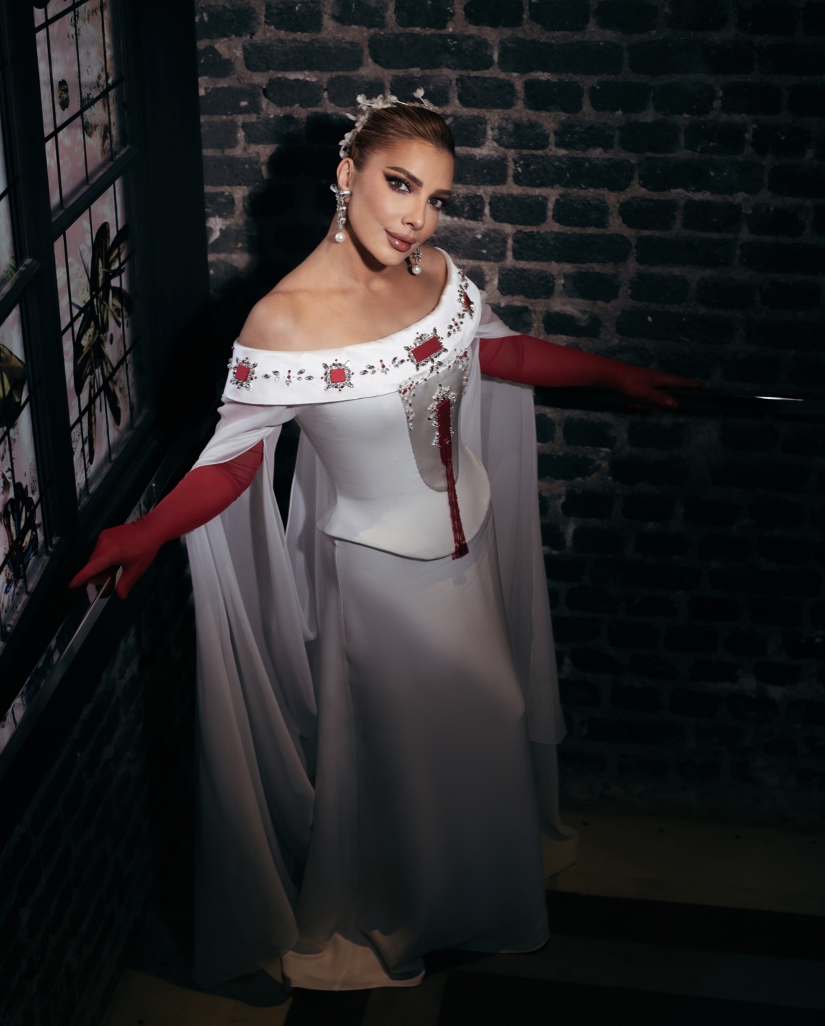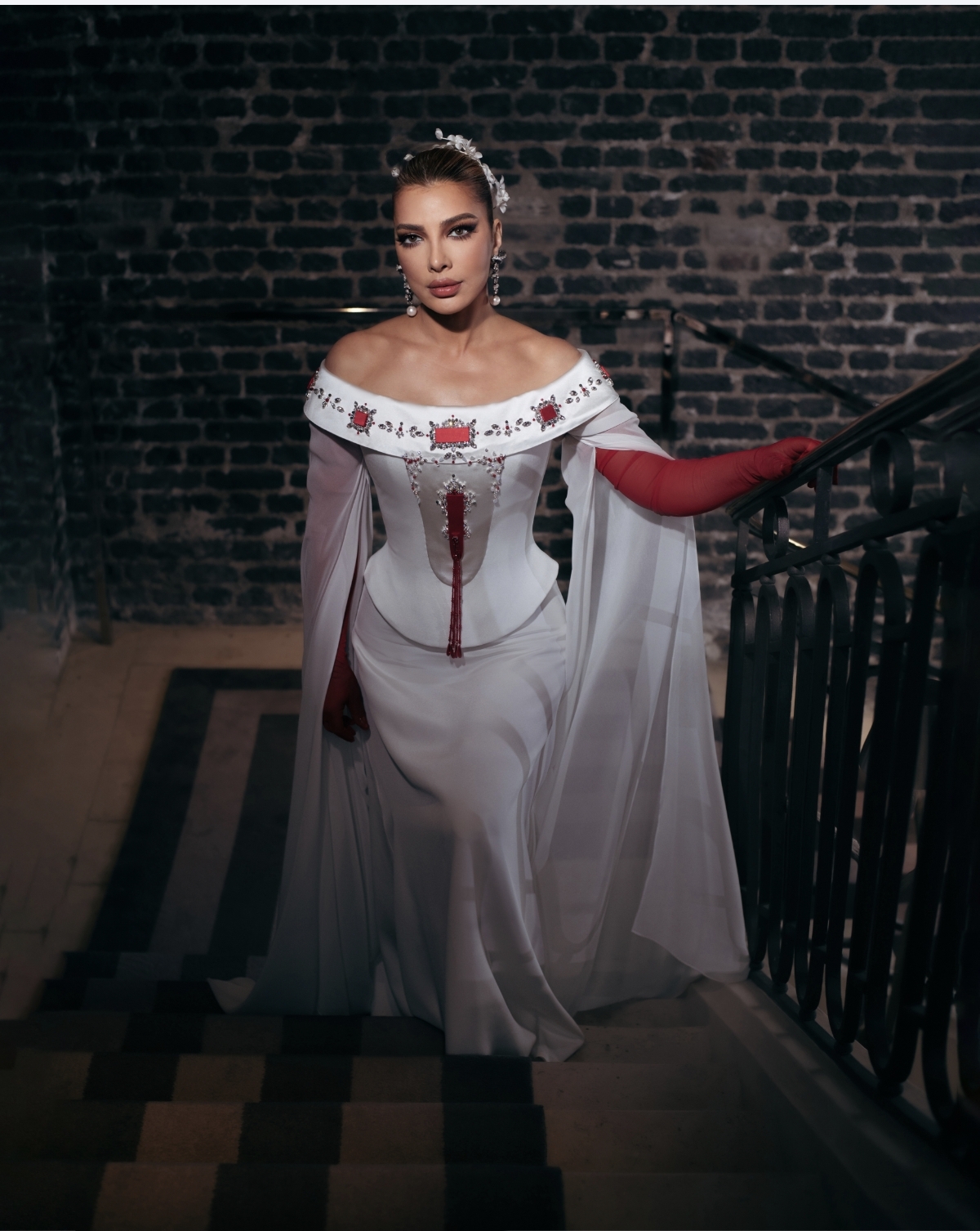وتألقت أصالة، بإطلالة حصدت إعجاب الكل بفستان تصميم السوري مثنى الحاج علي، وماكياج محمد الحداد، وكوافير باتريك، والتصوير لمحمد فيفيد.