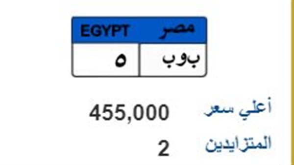 سعر لوحة «ب وب - 5» يقترب من نصف مليون جنيه