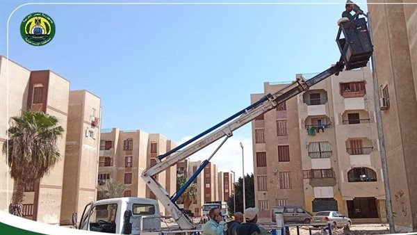 حملة نظافة مكبرة بمدينة المستقبل لرفع كفاءة أعمدة الإنارة العامة والبيئة وتحسين مستوى الخدمات