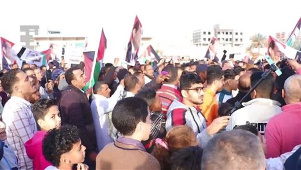 الآلاف من أبناء بنى سويف يرفضون تهجير الفلسطينيين ويرفعون أعلام فلسطين