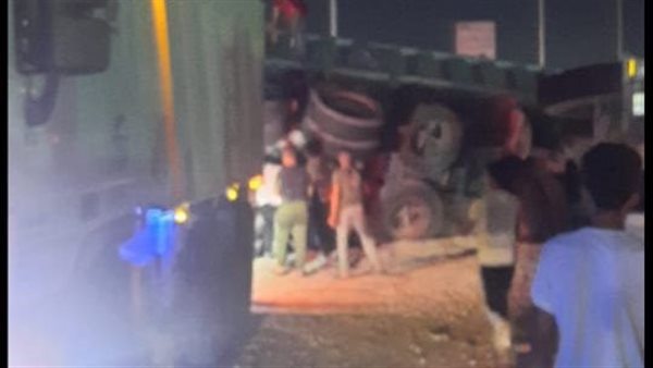 انقلاب تريلا محملة بالزلط على سيارتين ملاكي بالطريق الدائري أمام متحف الحضارة