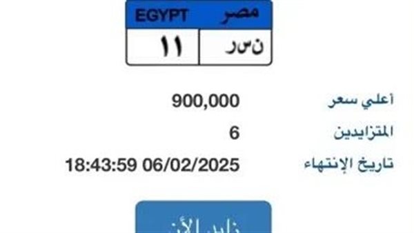 «ن س ر - 11».. طرح لوحة سيارة مميزة بسعر 900 ألف جنيه