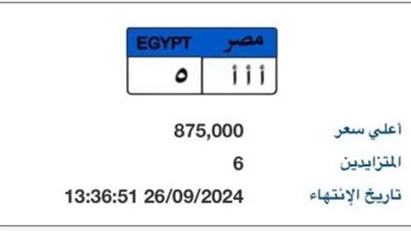 «أ أ أ- 5» لوحة معدنية مميزة سعرها يقترب من المليون جنيه