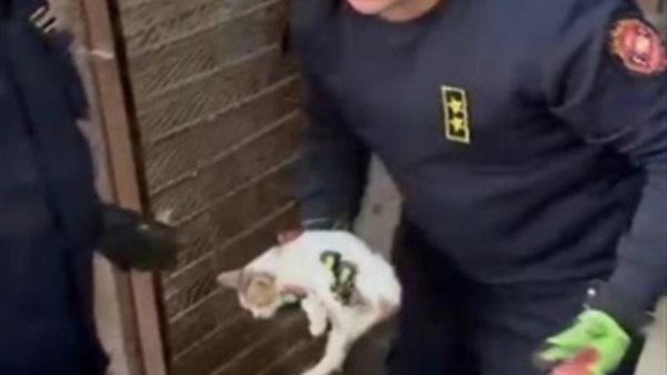 إنقاذ قطة من محل مغلق.. لفتة إنسانية من رجال الشرطة بالفيوم
