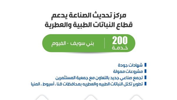 «تحديث الصناعة»: يقدم 200 خدمة بقطاع النباتات الطبية والعطرية ببني سويف والفيوم