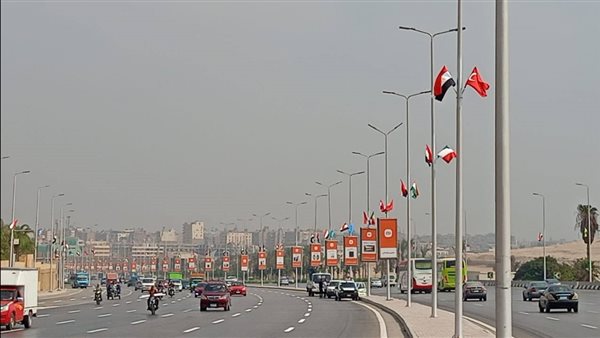تعليق الأعلام ولافتات الترحيب بضيوف مصر بالطرق المؤدية إلى المتحف المصري الكبير